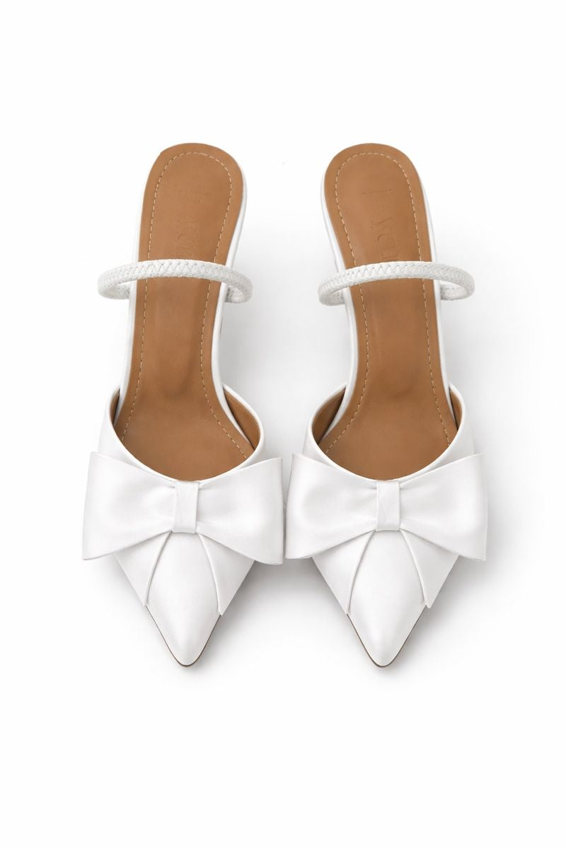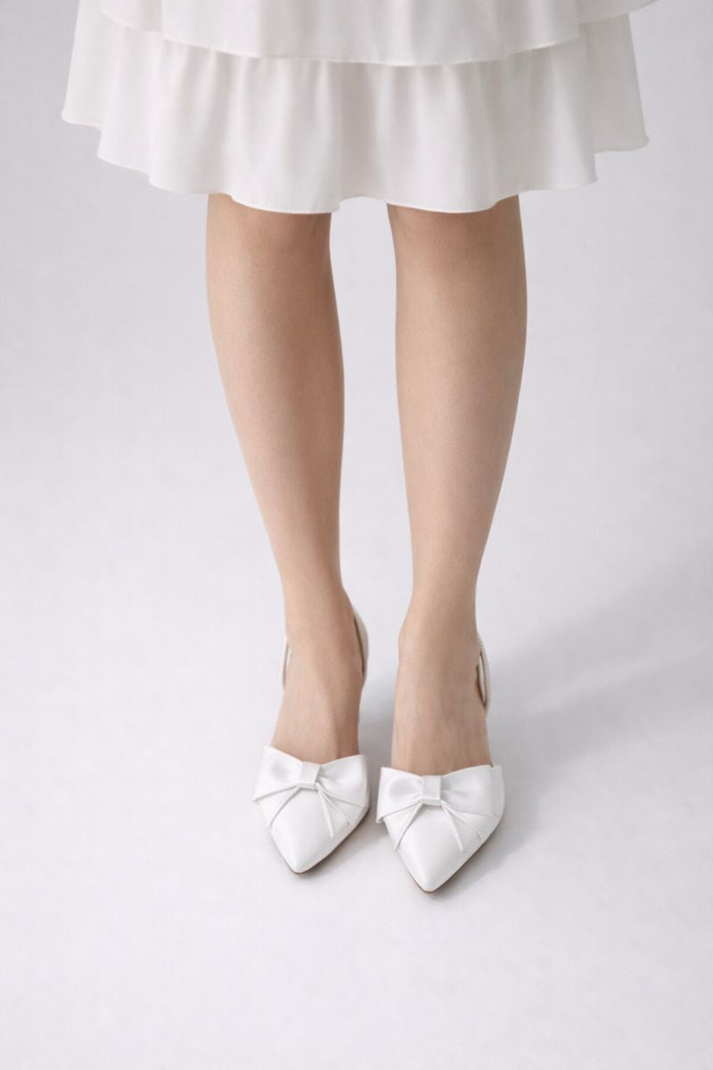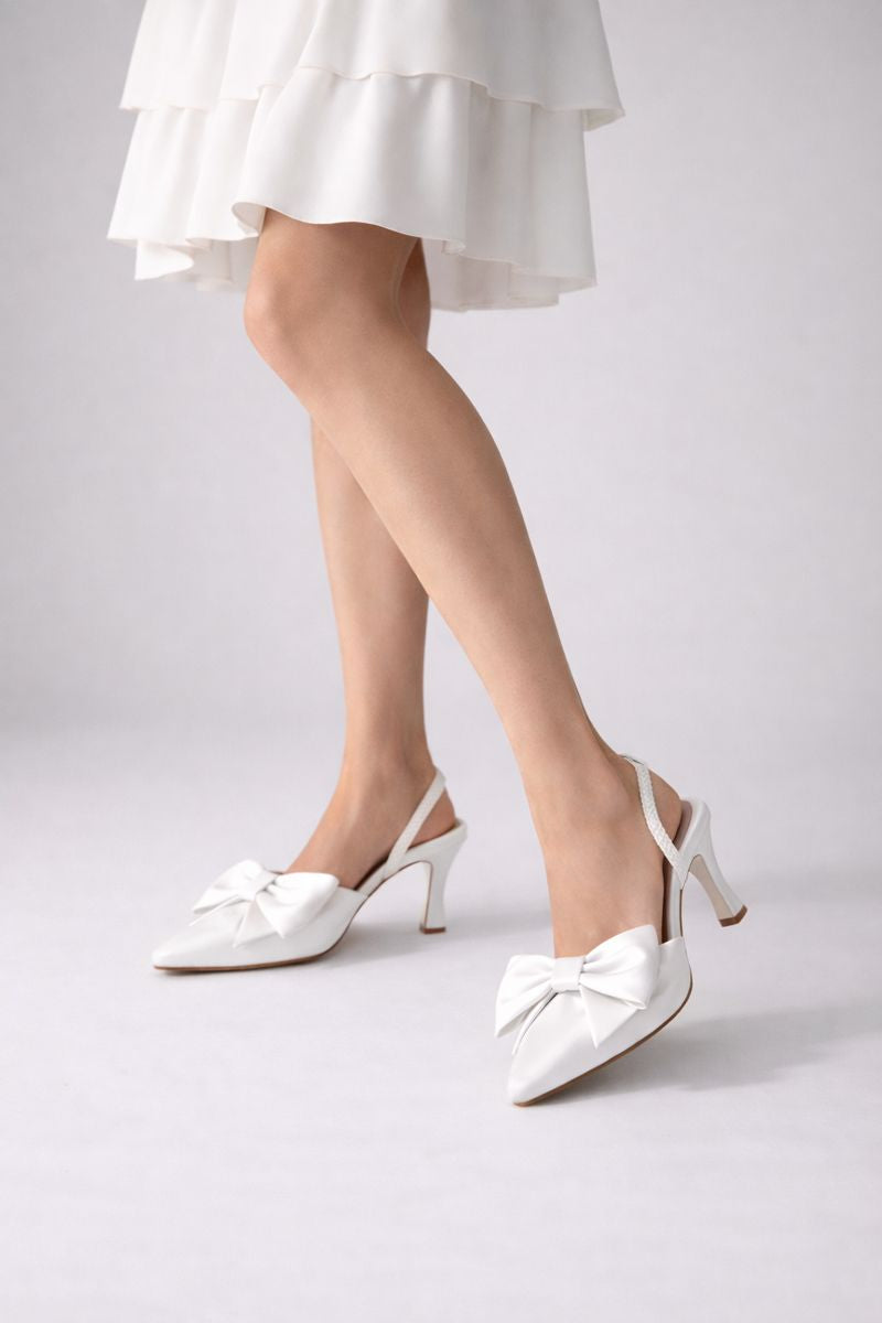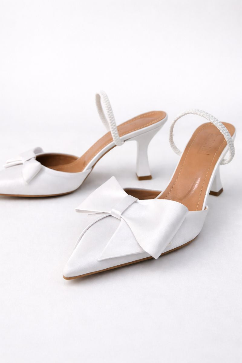 - Beyaz saten stiletto ile zarif ve şık görünüm