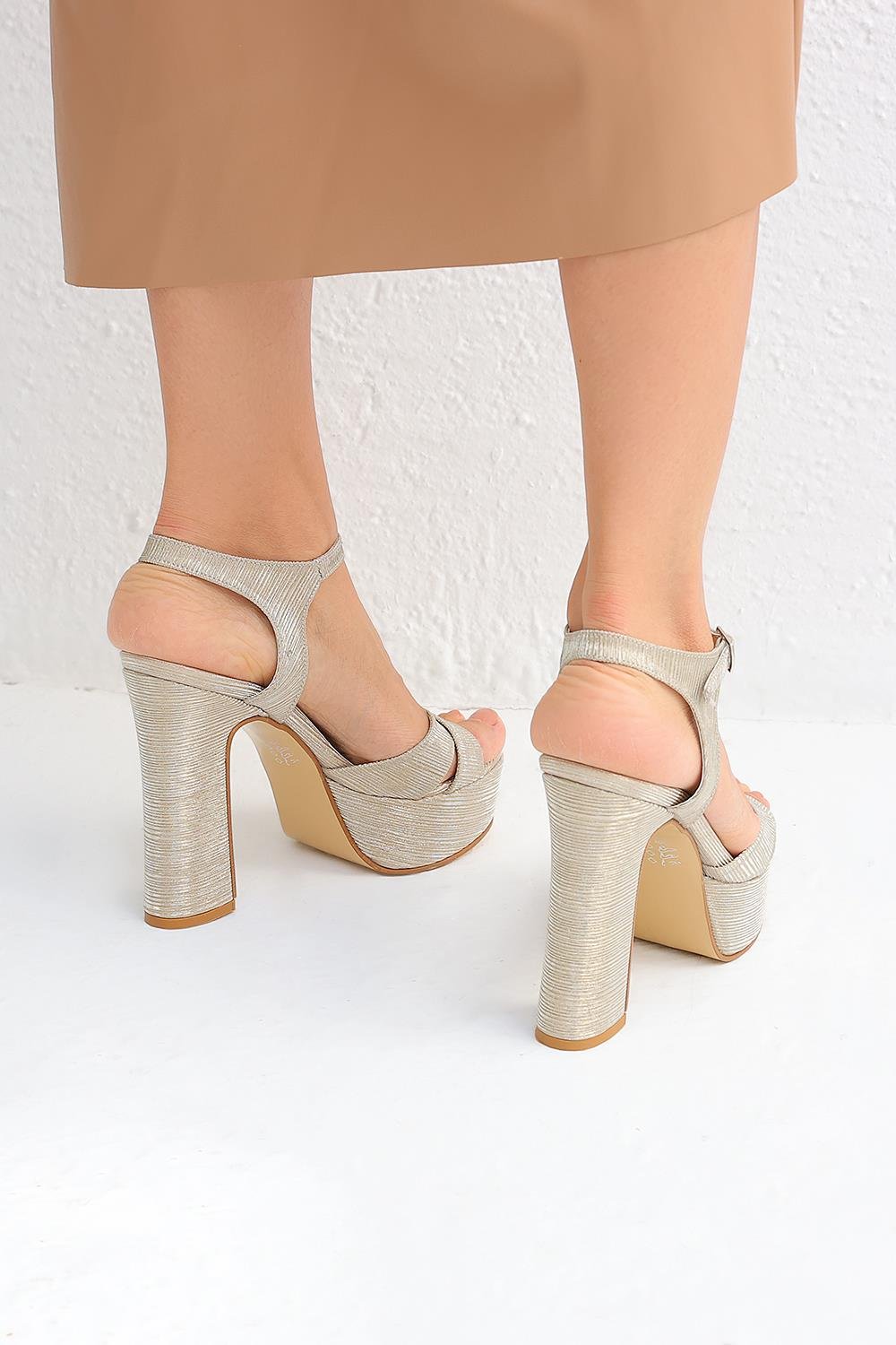 - 13 cm platform topuk, altın rengi ile abiye kombinlerinizi tamamlar.