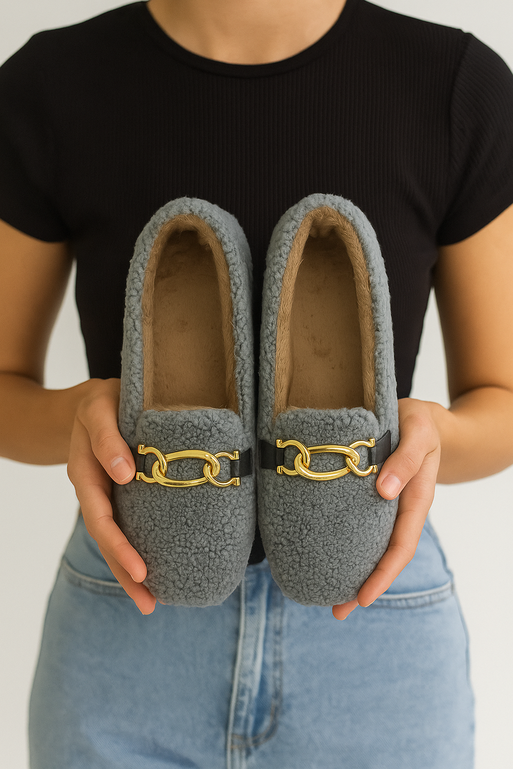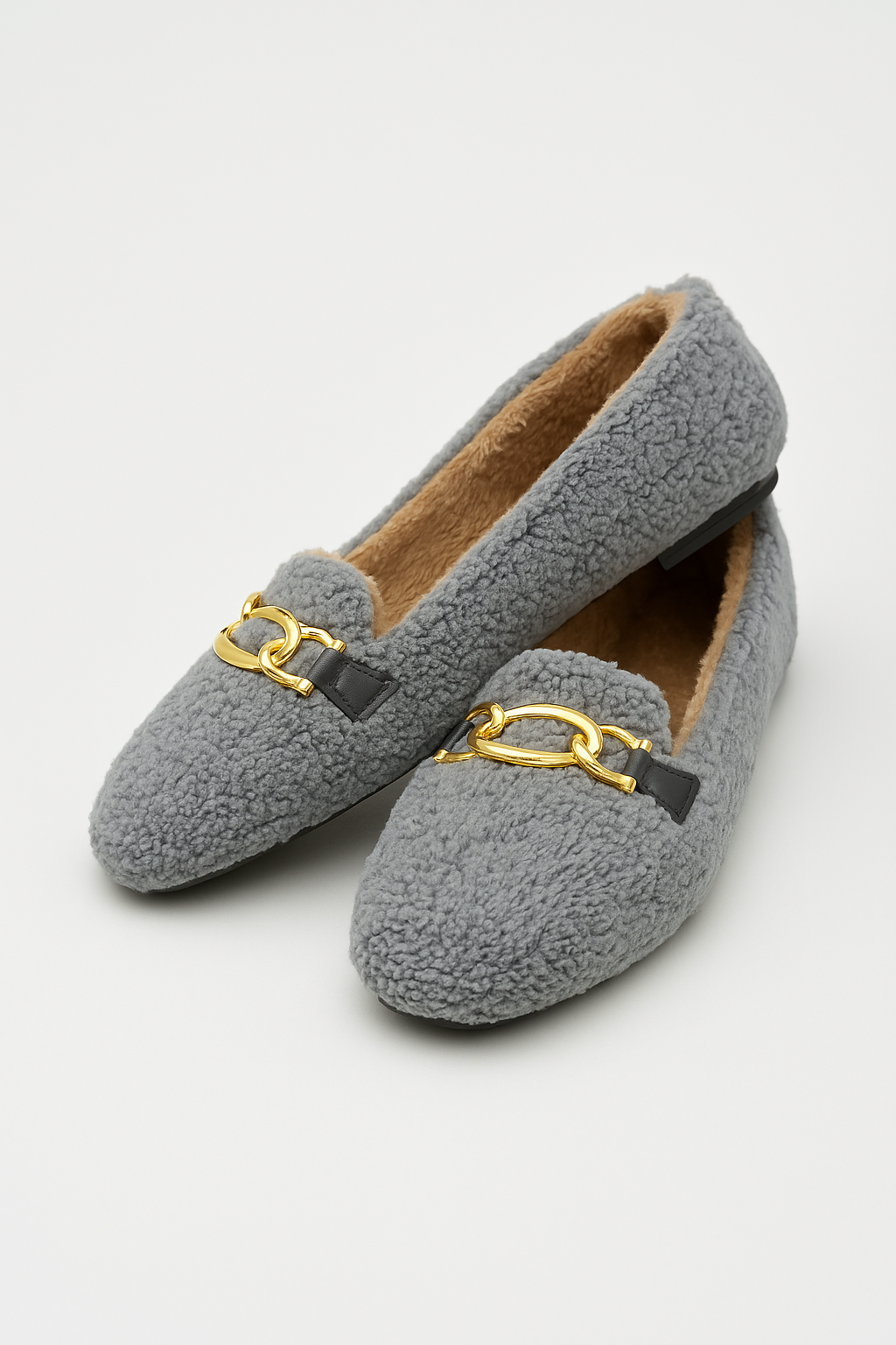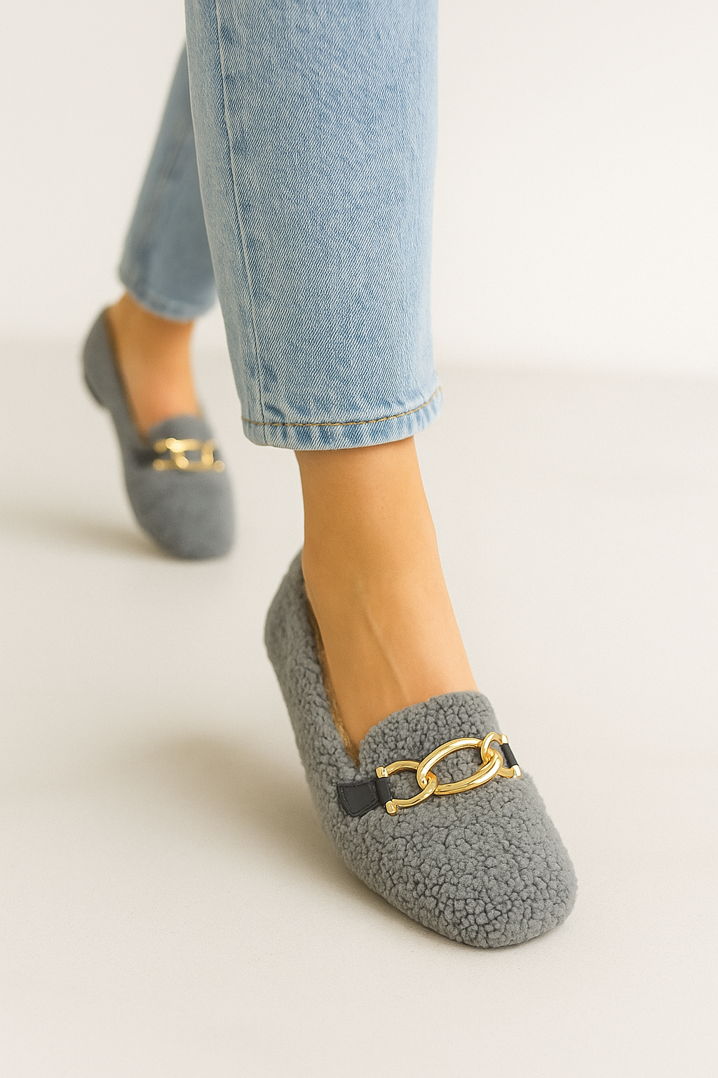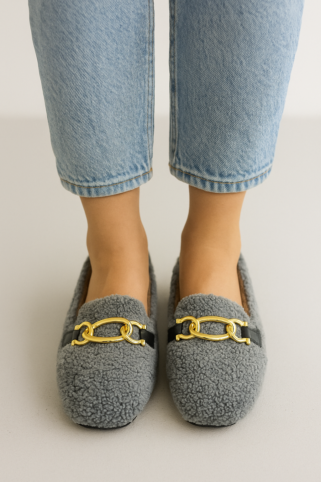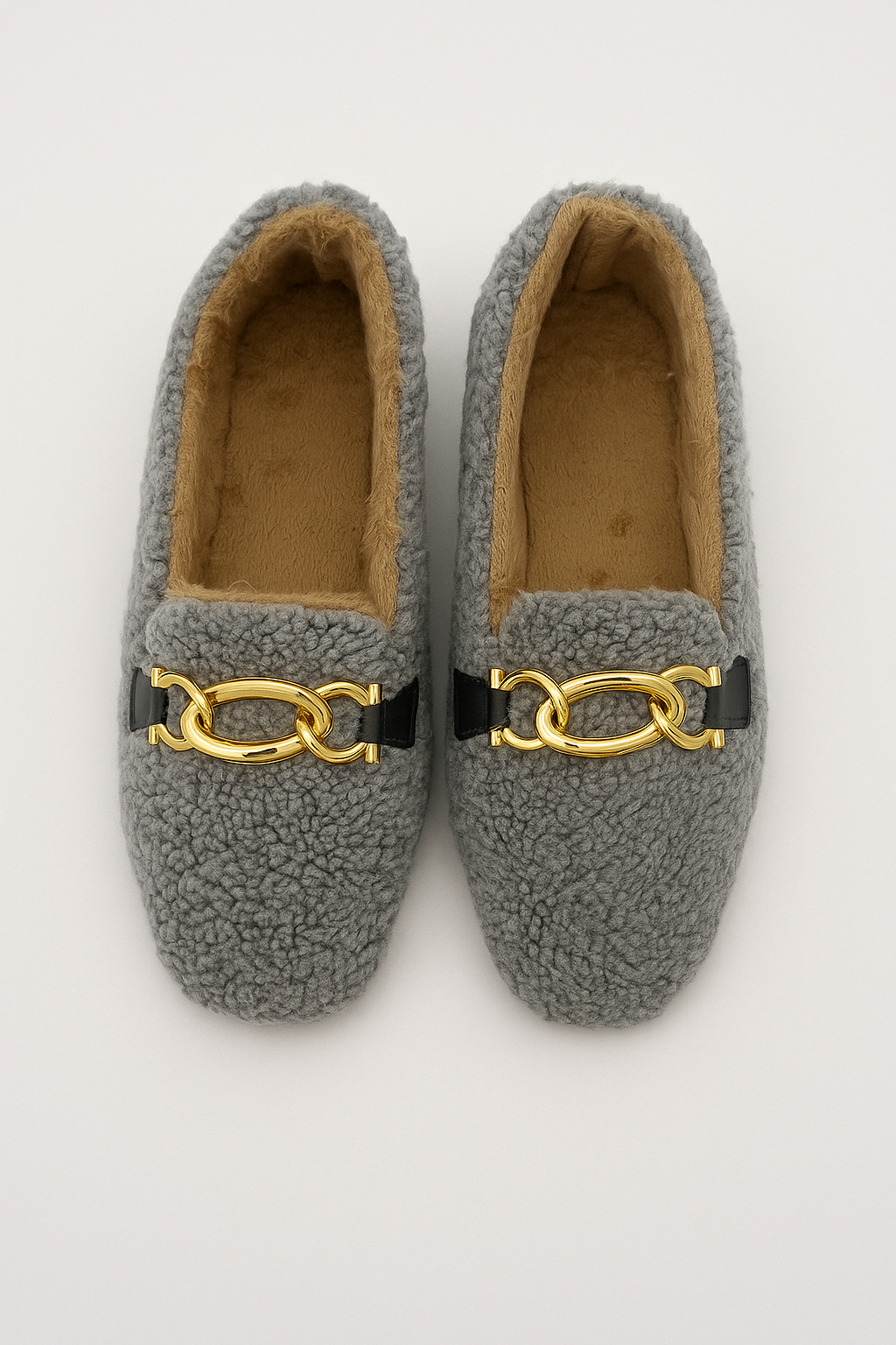 - Şıklığın konforla buluştuğu Beyond Kadın Gri Zincirli Peluş Babet ile zarafeti her adımda hissedin.