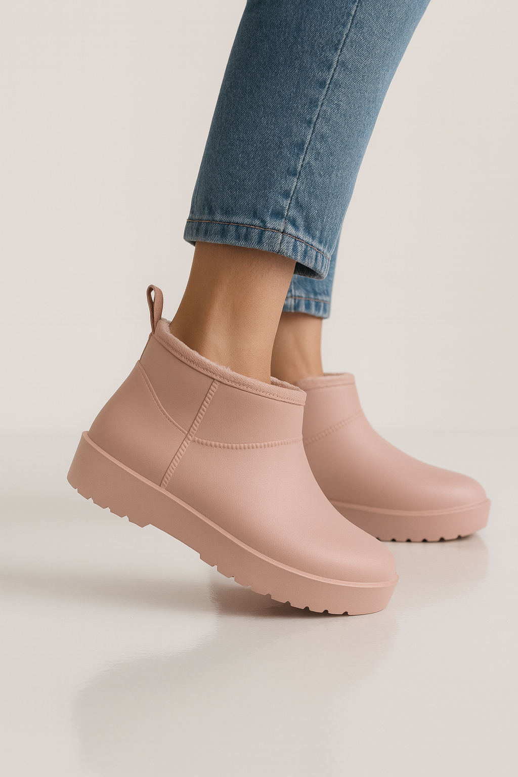 Beyond Kadın Pudra İçi Kürklü Su Geçirmez Faylon Yağmur Botu, şıklığı ve konforu bir araya getiren özel bir tasarıma sahiptir. Su geçirmez faylon tabanı sayesinde yağmurlu ve karlı havalarda ayaklarınızı kuru tutar. İçi tamamen kürklü yapısı sayesinde sıcaklık ve yumuşaklık sunarken, kalın topuklu kısa bot formu ile günlük kombinlerinize zarif bir dokunuş katar. Dayanıklı dış yüzeyi, soğuk ve nemli hava koşullarına karşı maksimum koruma sağlar. Hem şehir hayatında hem doğa yürüyüşlerinde rahatlıkla kullanılabilir.