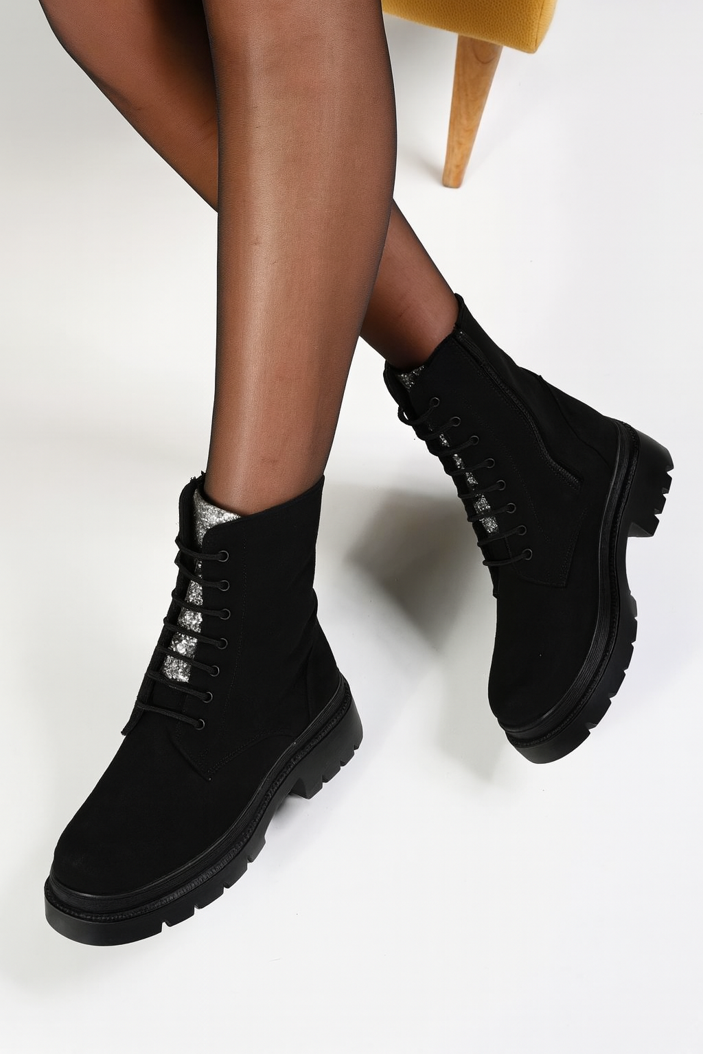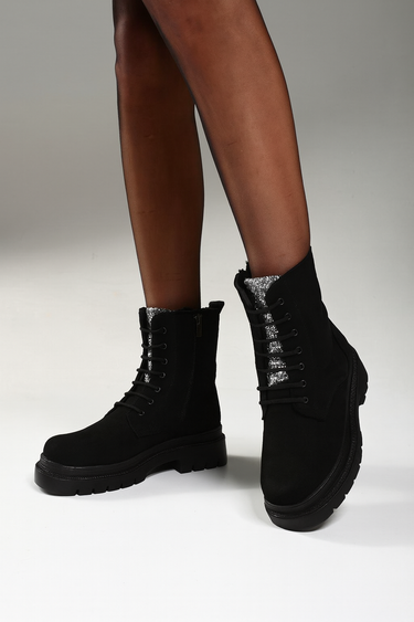 Beyond Kadın Siyah Beatrice Taşlı Süet Postal 4cm BYNDBTR01