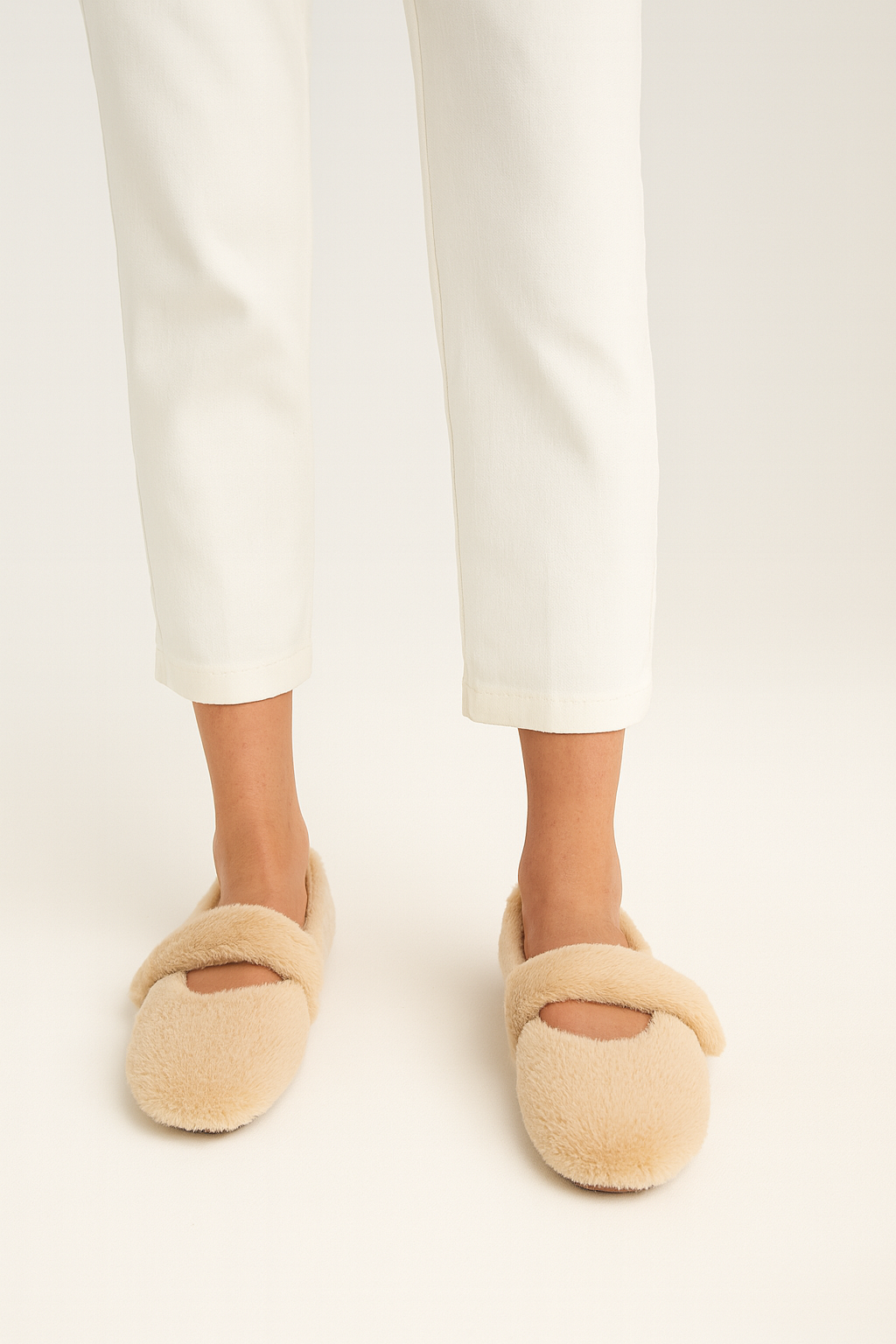 - Sıcacık peluş dokusu ve kalın bantlı tasarımıyla Beyond kadın babet ayakkabı, her adımda konfor ve şıklık sunuyor.