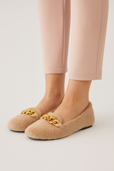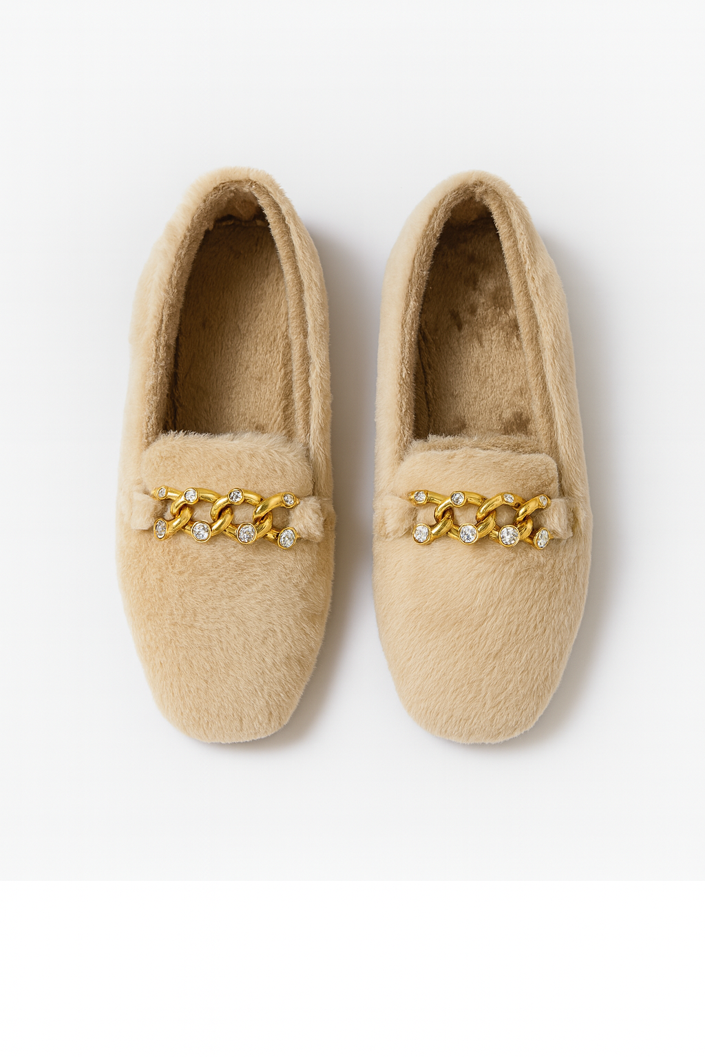 - Hem şık hem konforlu! Beyond bej taşlı peluş babet ile ev modasına dokunun.