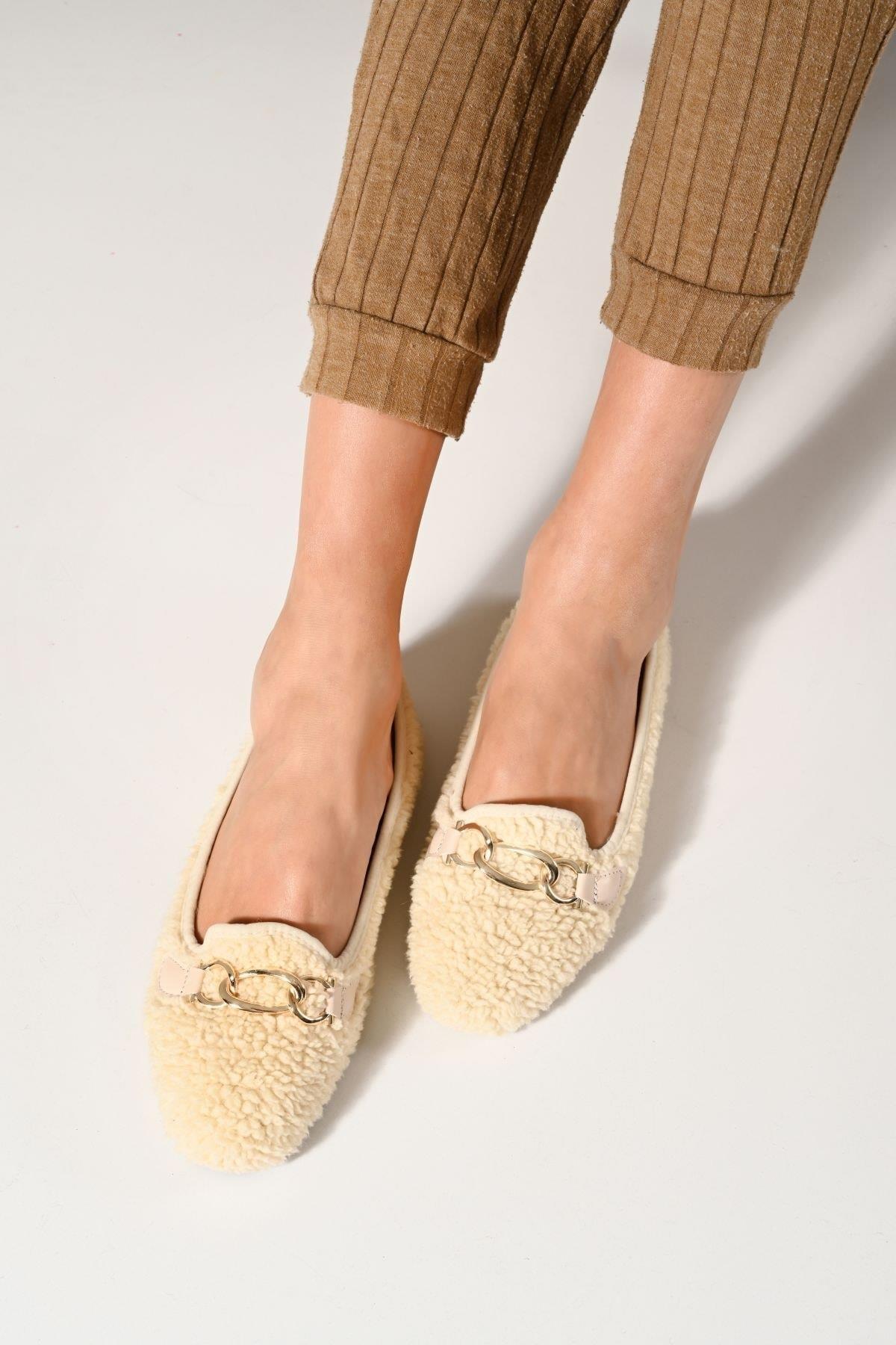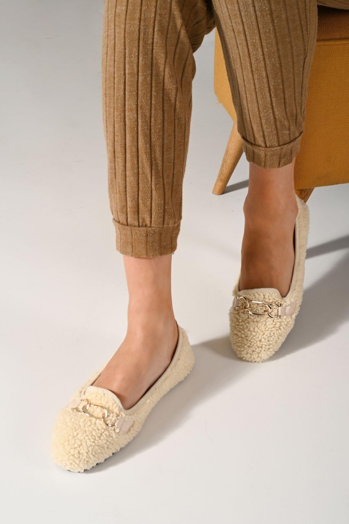 • Evinizde Konfor ve Şıklık! Beyond Kadın Krem Peluş Ev Babeti, zarif zincir detayı ve peluş iç yapısıyla her adımda rahatlık sunar.