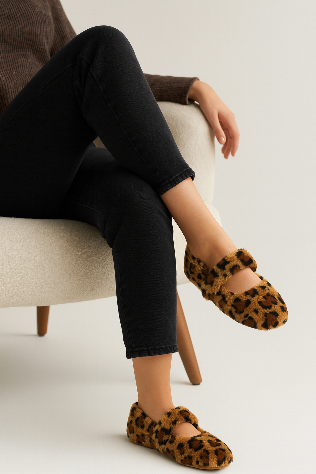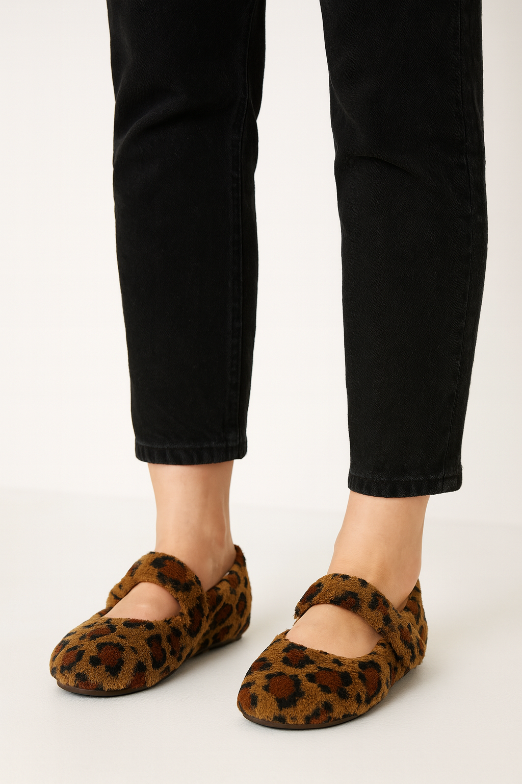 Beyond Kadın Leopar Kalın Bantlı Mary Jane Tüylü Günlük Babet BYNDMJ002