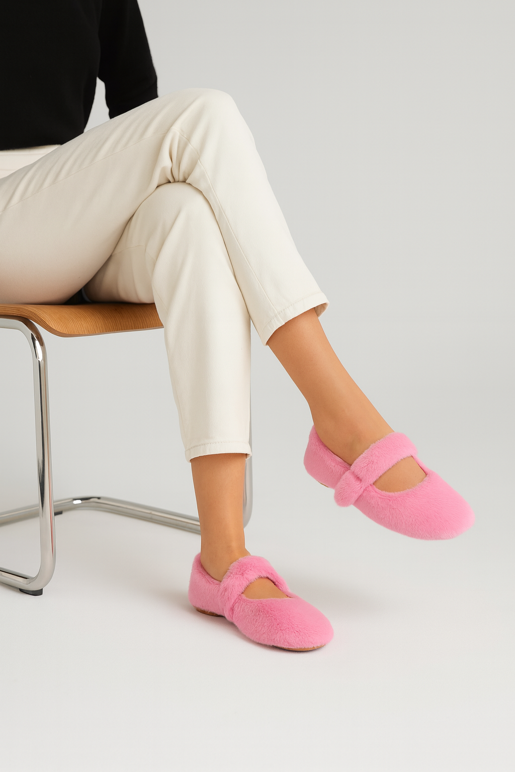 Beyond Kadın Pembe Kalın Bantlı Mary Jane Tüylü Günlük Babet BYNDMJ002