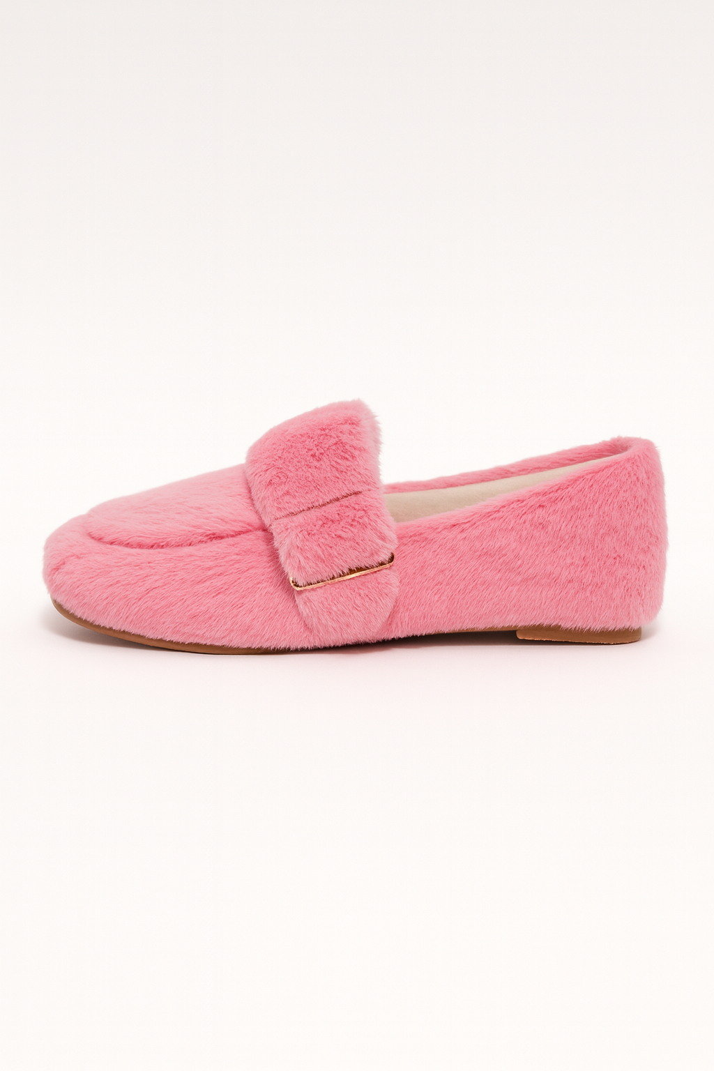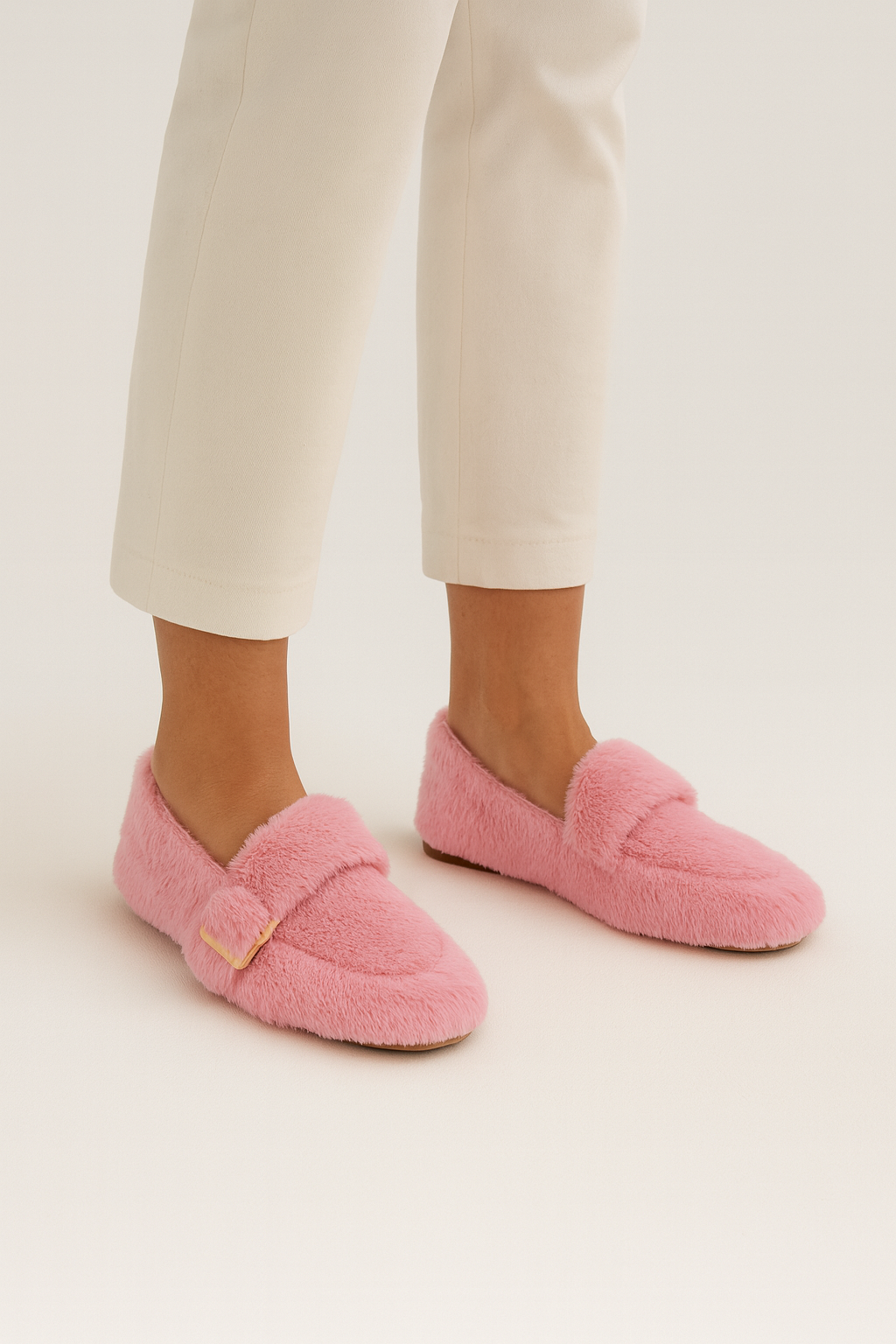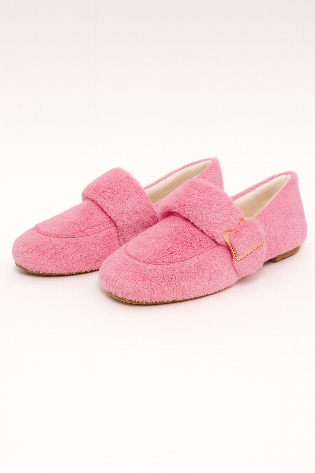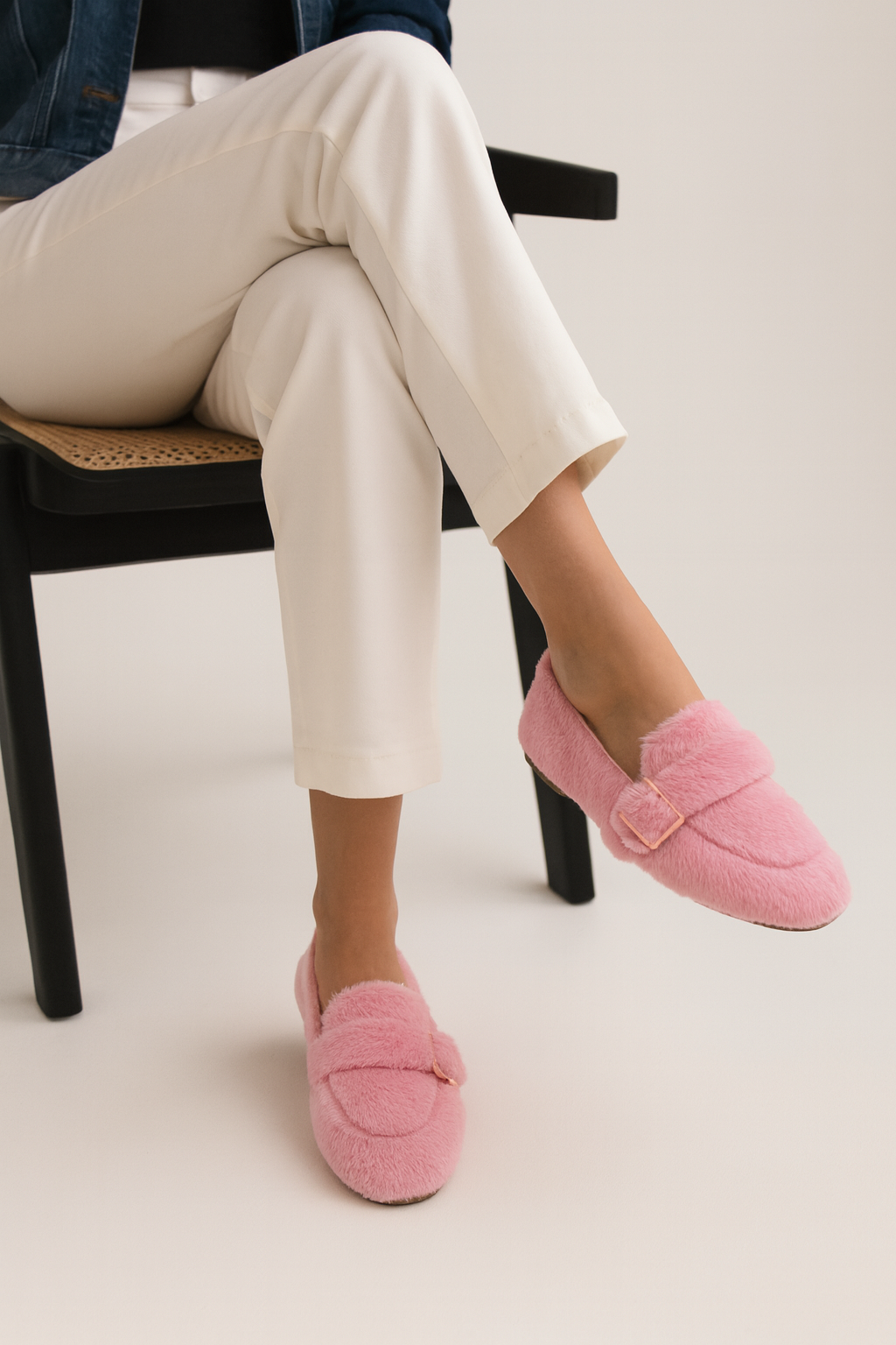 - Yumuşacık peluş dokusu ve romantik pudra rengiyle babet ayakkabı kadın koleksiyonunuza zarif bir dokunuş.