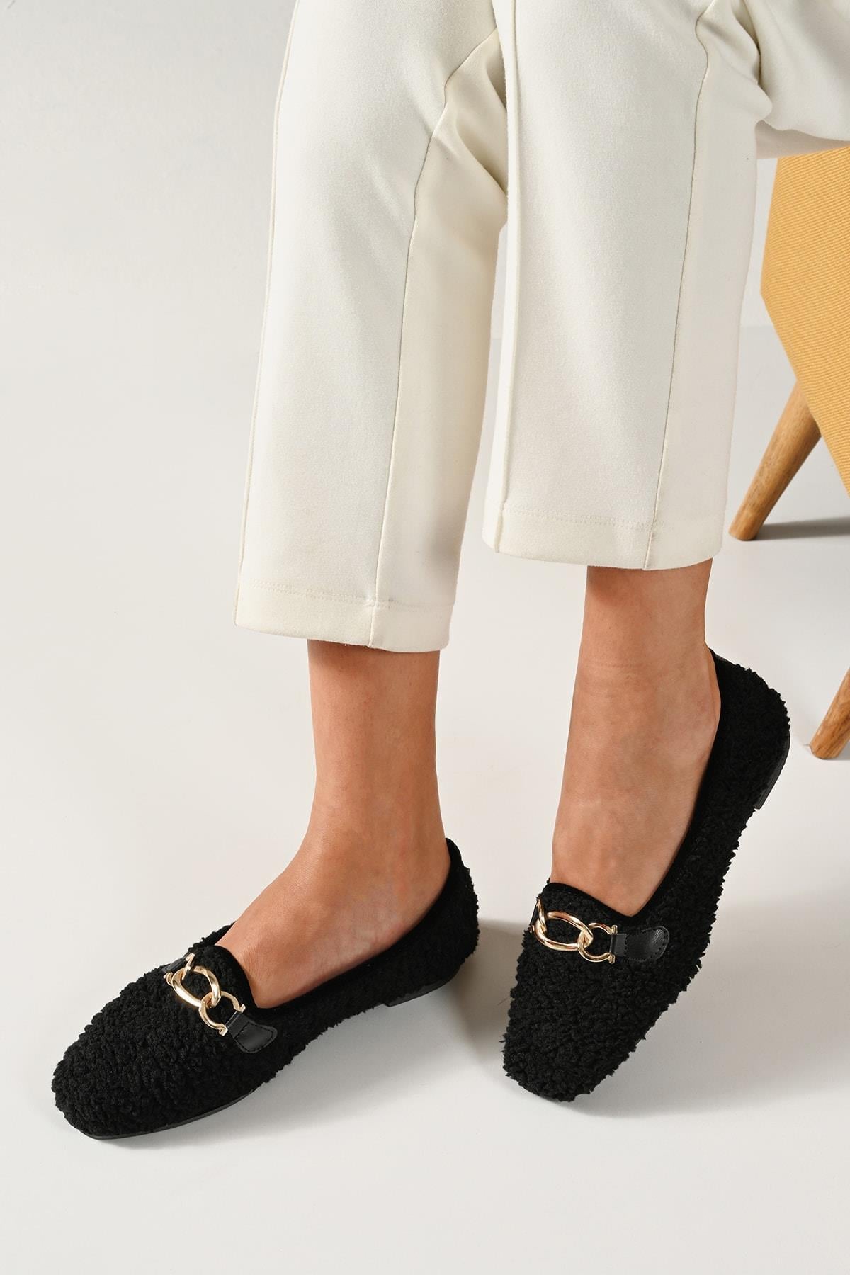 • Peluş iç yapısı ve şık zincir detayıyla her adımda zarif ve rahat bir deneyim.