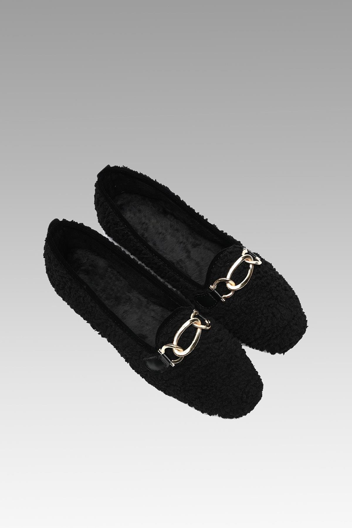Beyond Kadın Siyah Gurva Zincirli Peluş Ev Babeti 1cm BYNDSHR01
