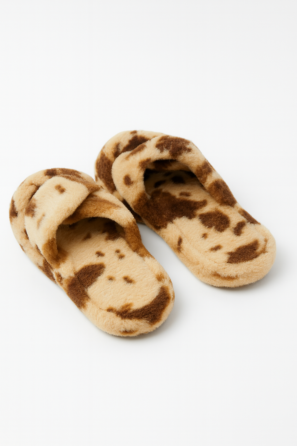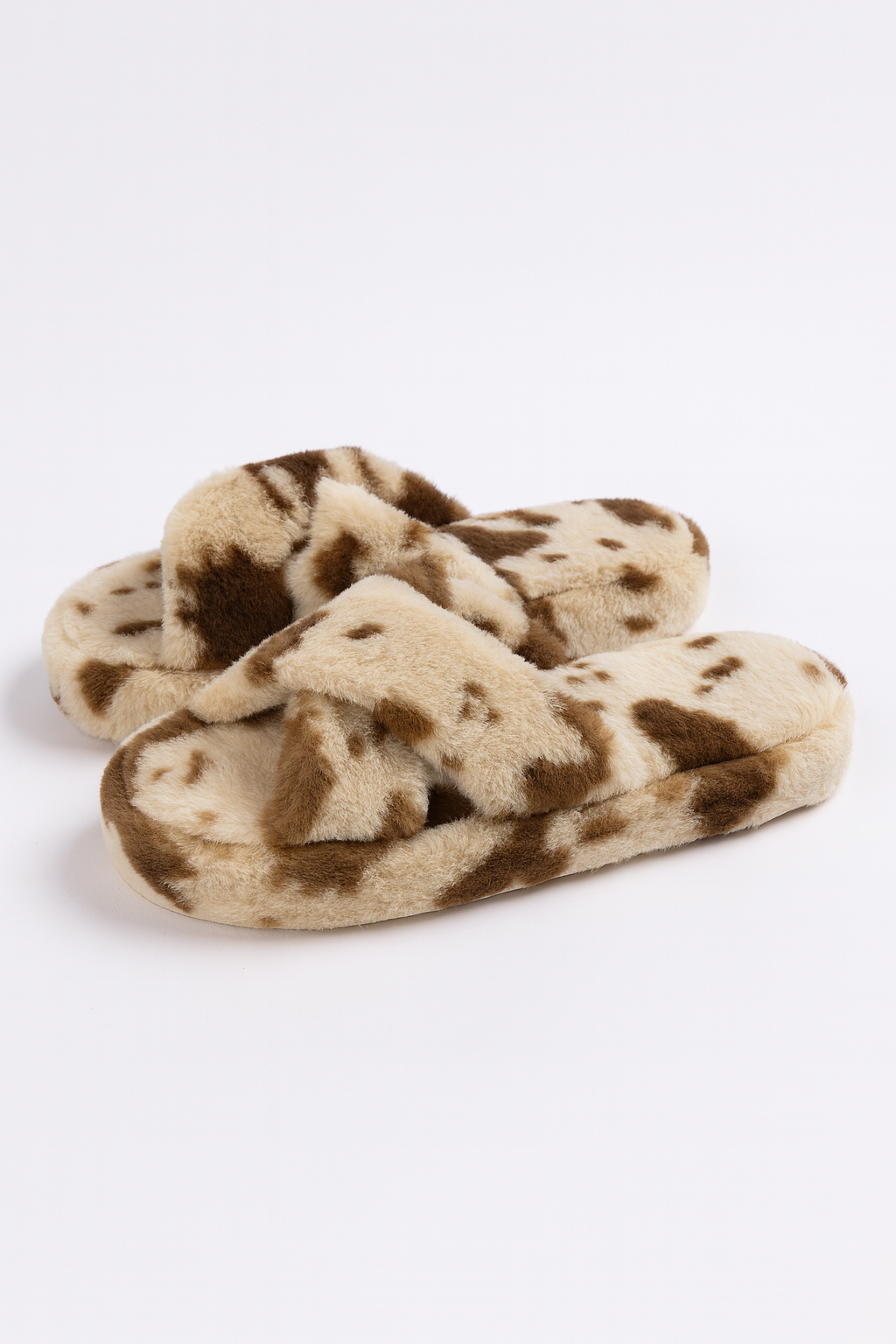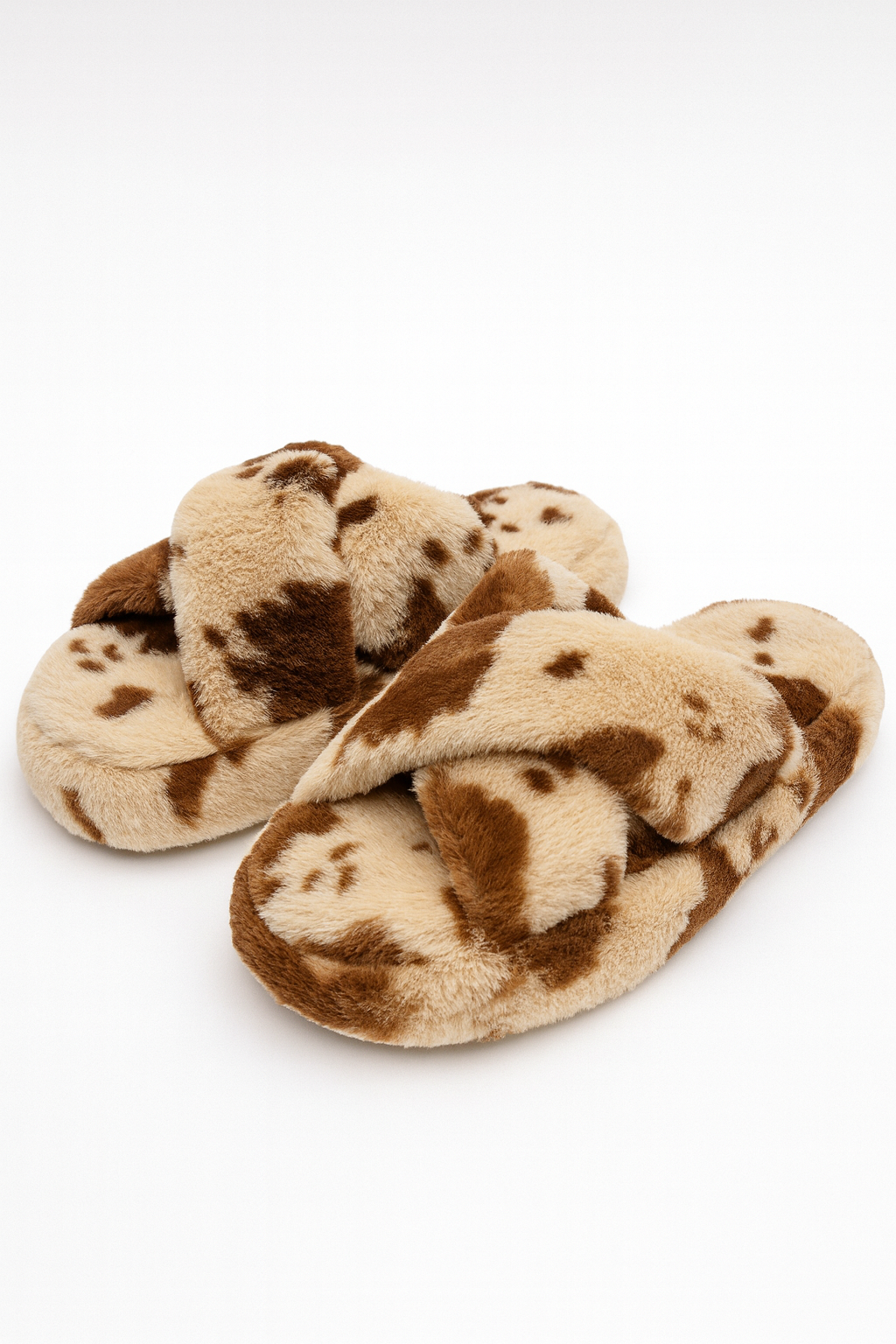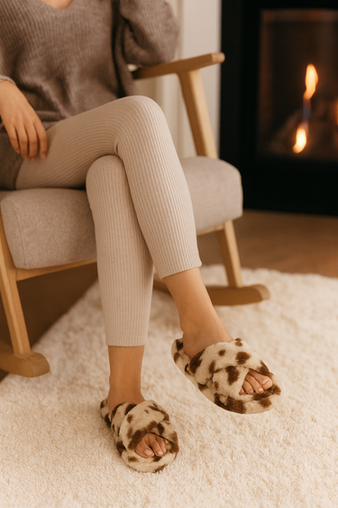 Beyond Kadın Dalmaçya Desenli Vizon Bej Çapraz Bantlı Tüylü Ev Terliği BYNDCAP01