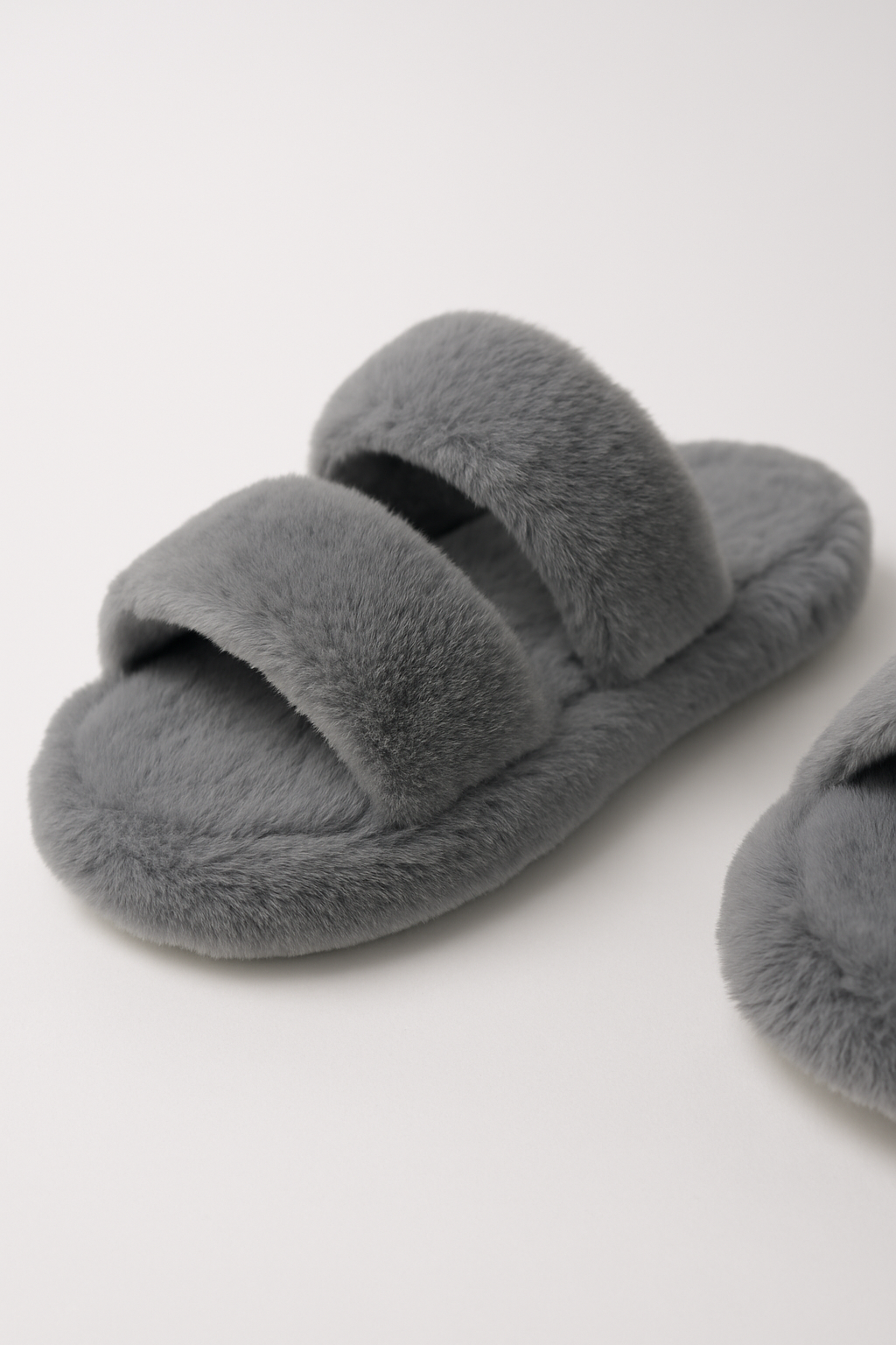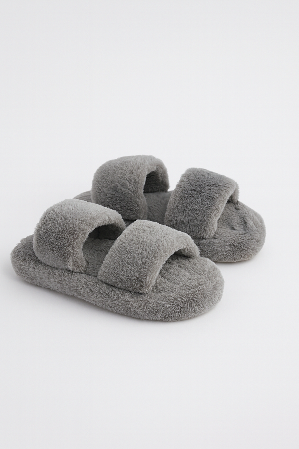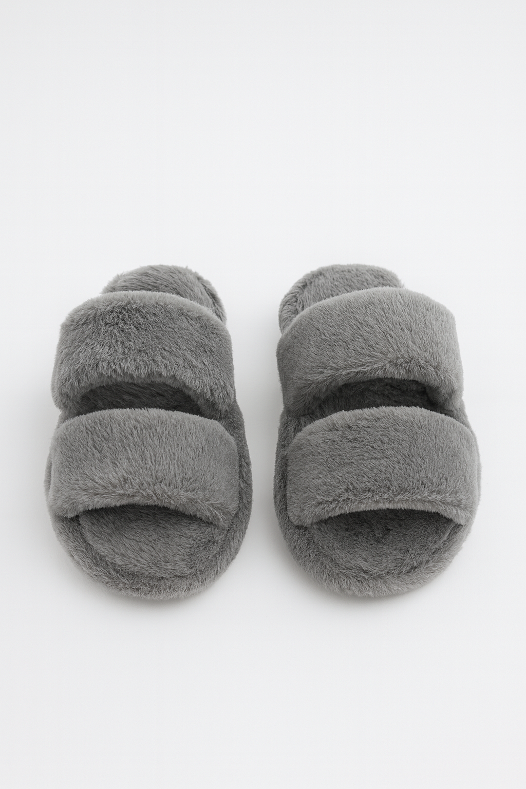 Beyond Kadın Çift Bantlı Füme Rengi Tüylü Ev Terliği BYNDCIFT02