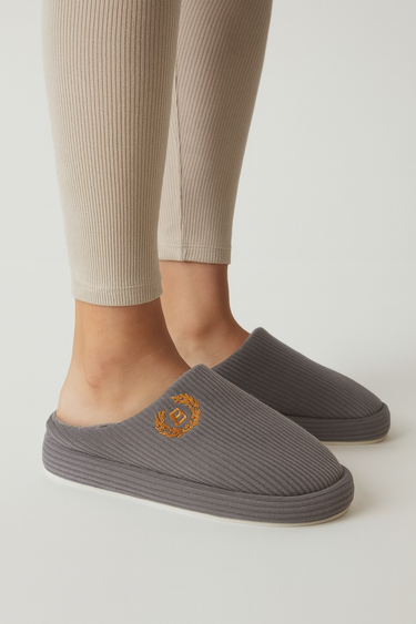Beyond Kadın Gri Nakışlı Kadife Ev Terliği BYNDZENKDF01