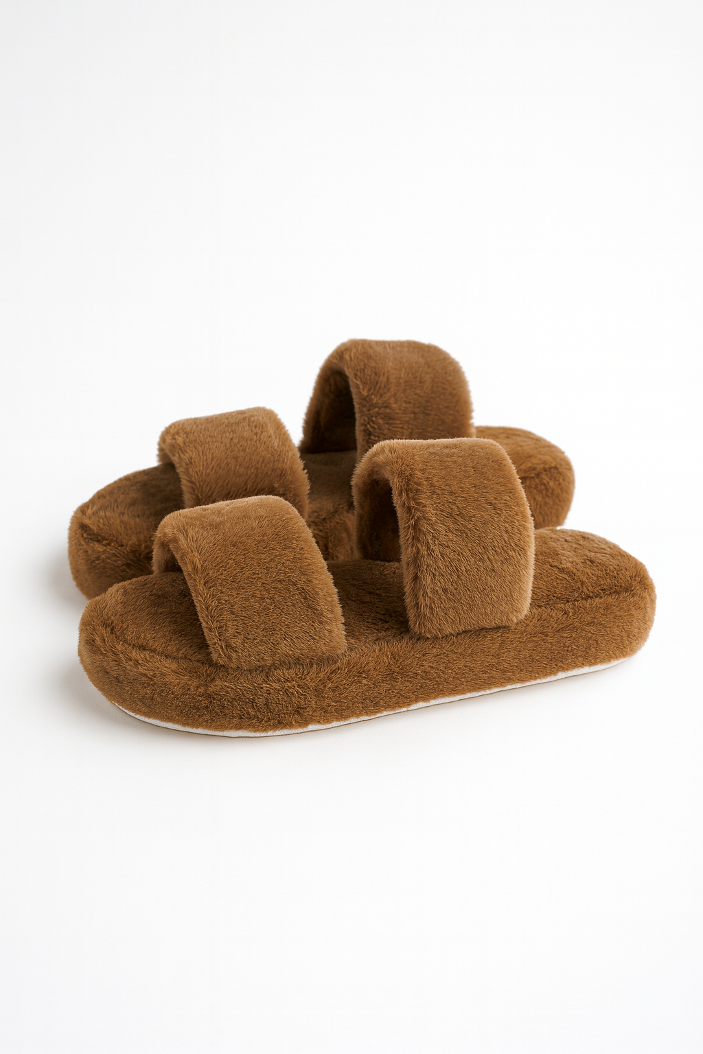 Doğallığın ve sıcaklığın rengi kahverengi, bu tüylü ev terliğiyle ev şıklığına huzurlu bir dokunuş katıyor. Yumuşacık peluş yapısı sayesinde kış boyunca ayaklarınızı sıcacık sarar ve rahat bir kullanım sunar. Düz bantlı tasarımı, hem pratik giyme kolaylığı sağlar hem de minimal bir şıklık kazandırır. Kahverenginin toprak tonları, ev kombinlerinize doğal bir zarafet ekler.