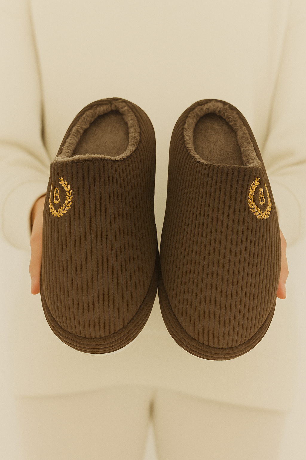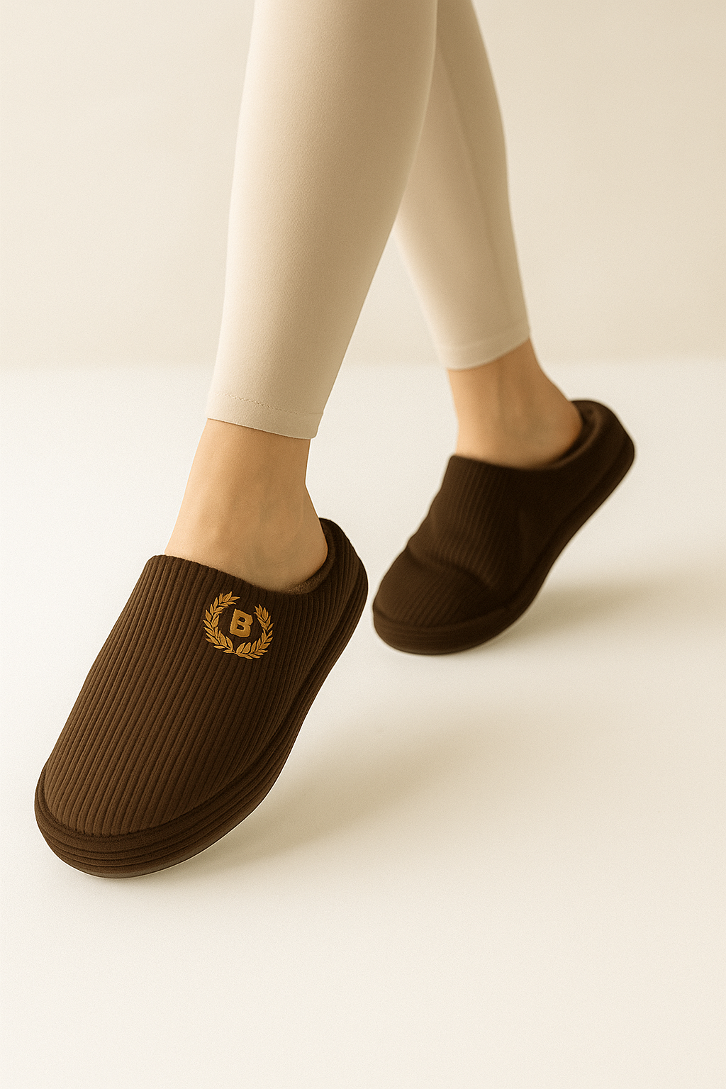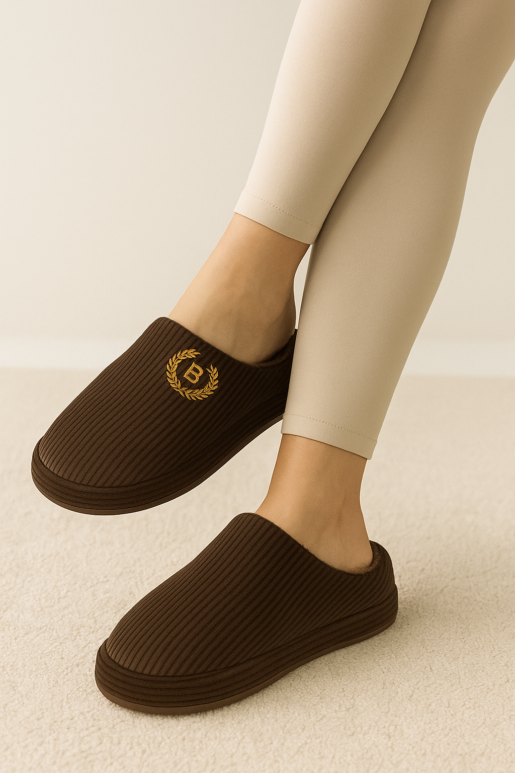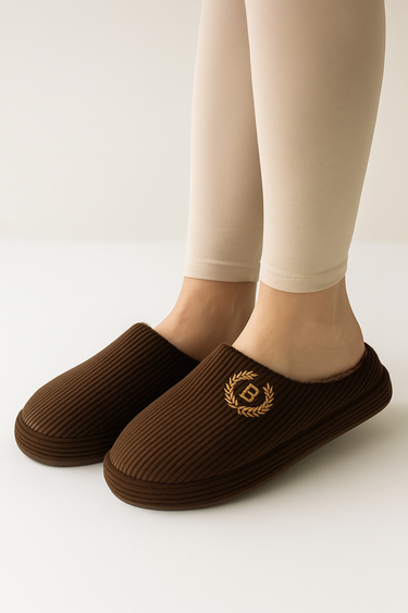 - Günlük konforun ve klasik zarafetin buluştuğu nokta: Kahverengi Kadın Ev Terliği.