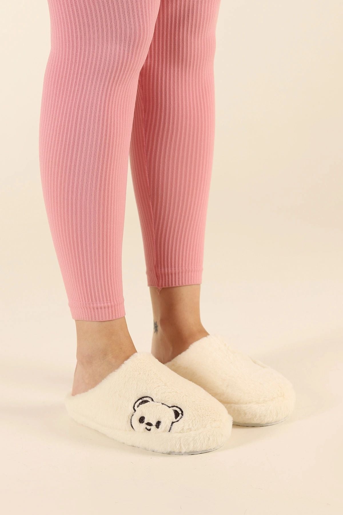 Beyond Kadın Krem Ayıcıklı Tüylü Ev Terliği BYNDAY01