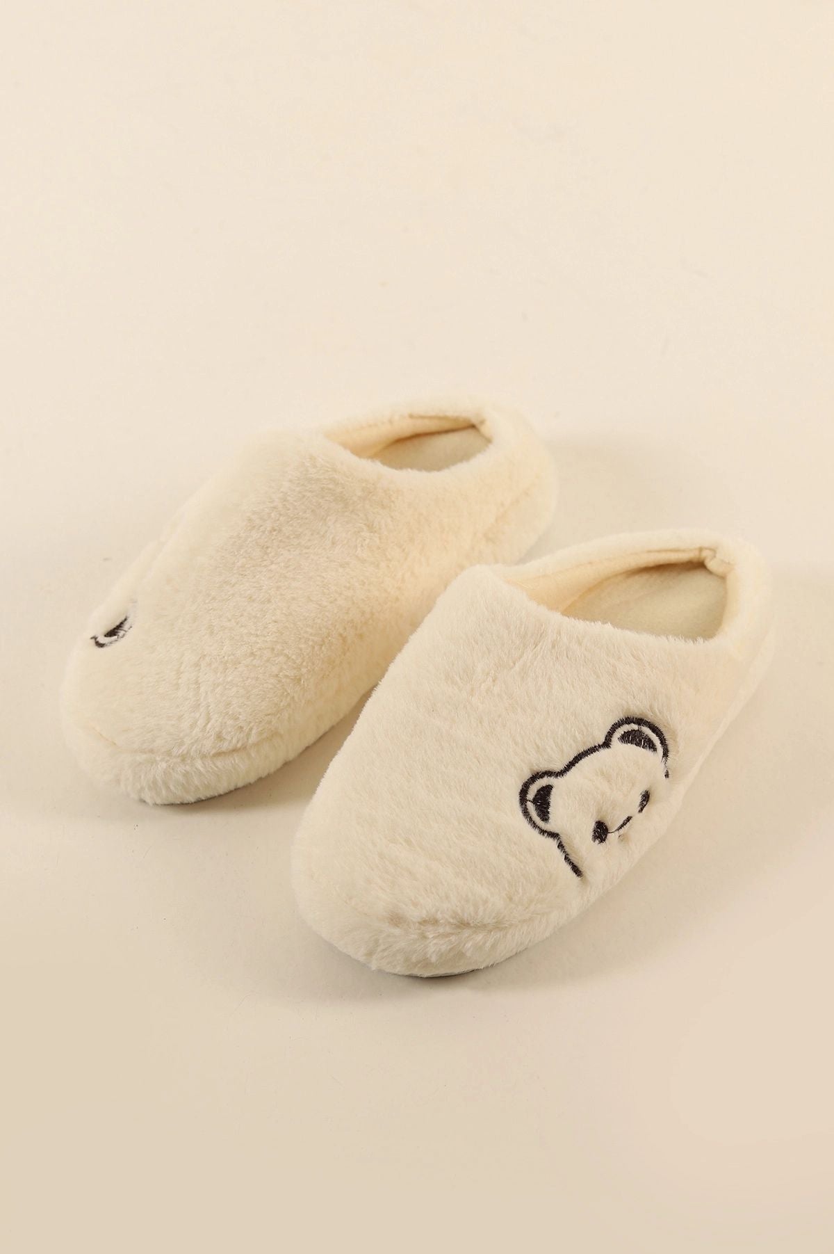 - Zarif tasarımıyla öne çıkan krem ayıcıklı peluş ev terliği, evinizin şıklığını tamamlar.