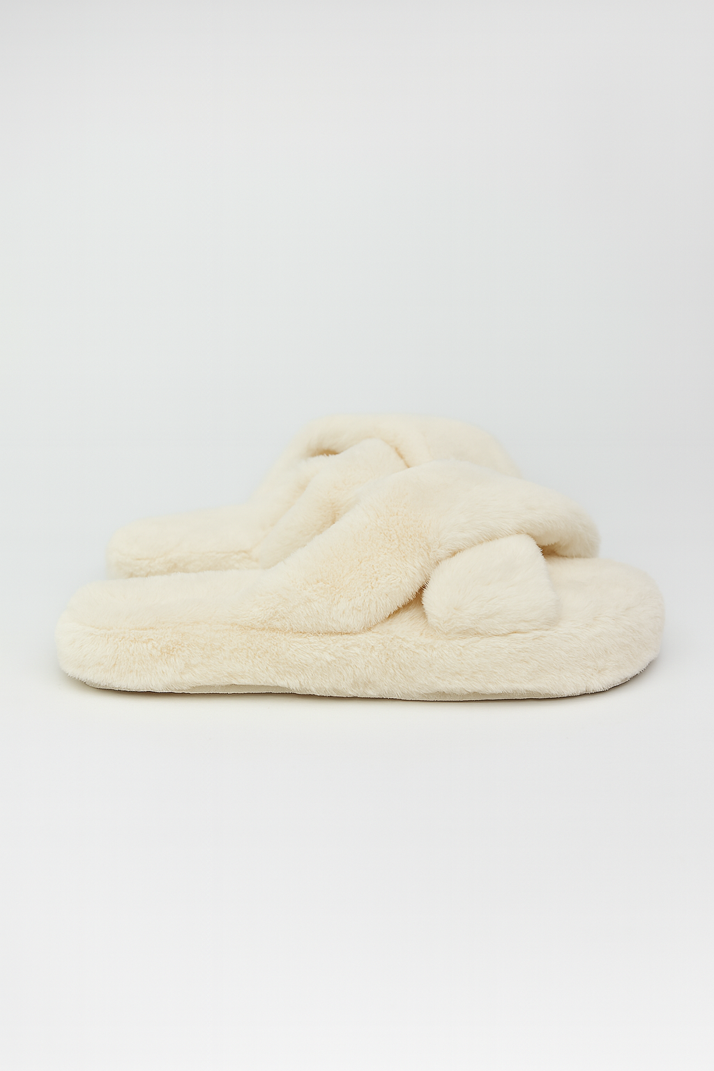 Beyond Kadın Krem Çapraz Bantlı Tüylü Ev Terliği BYNDCAP01