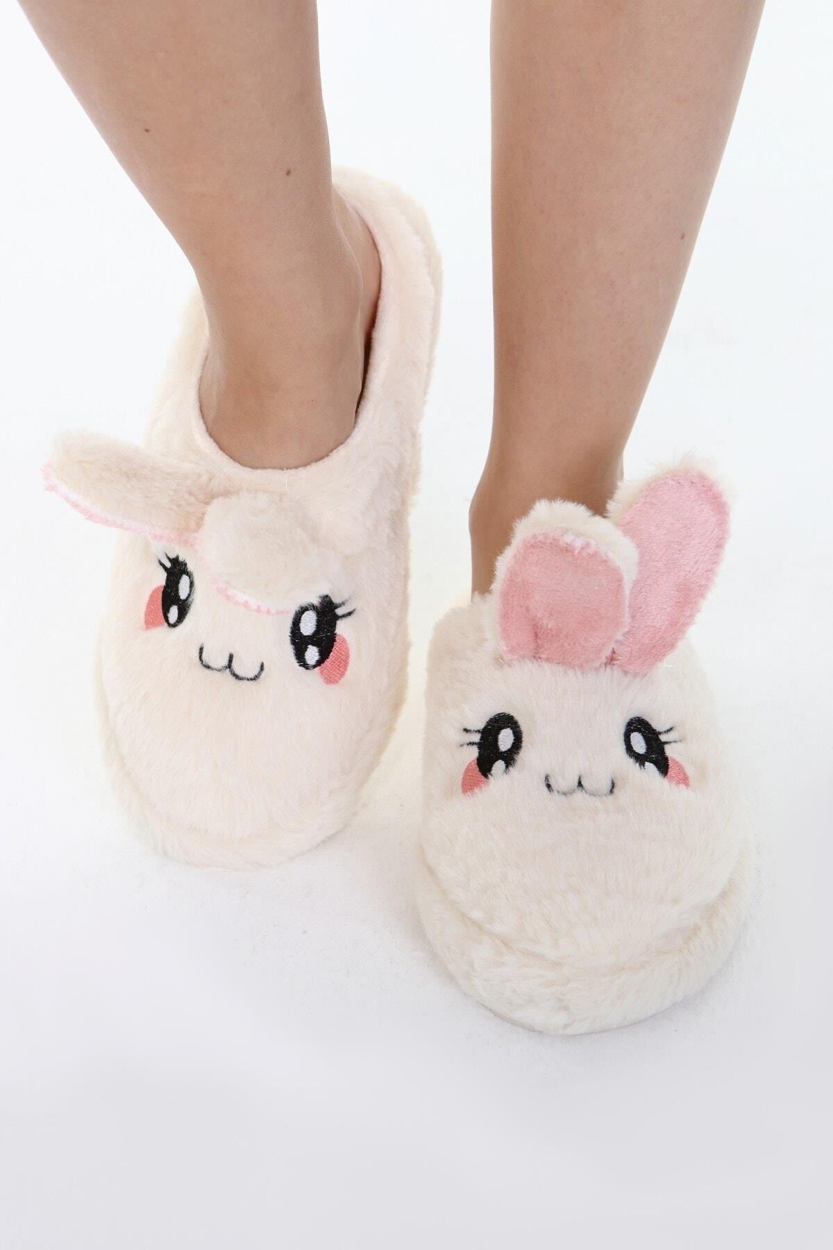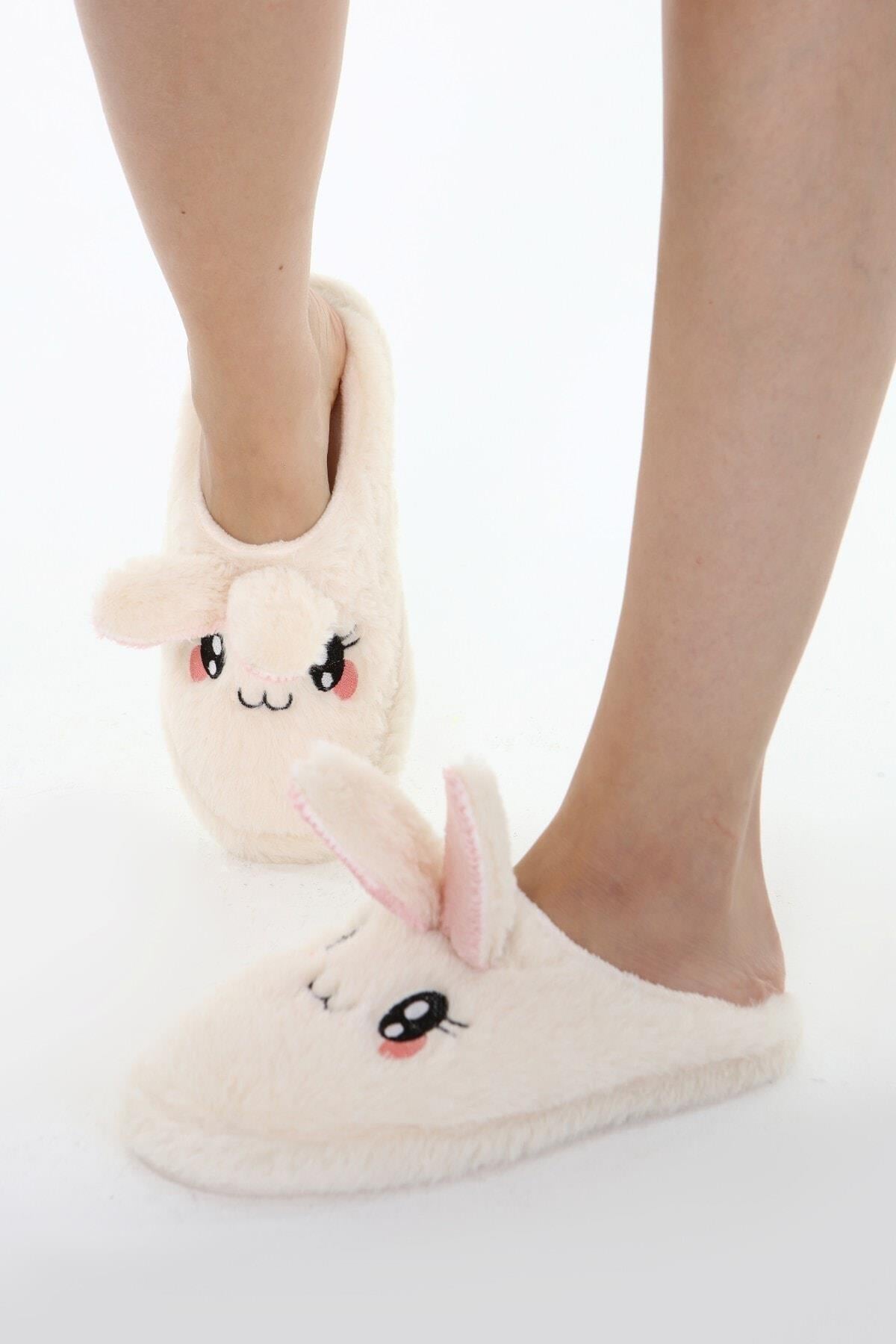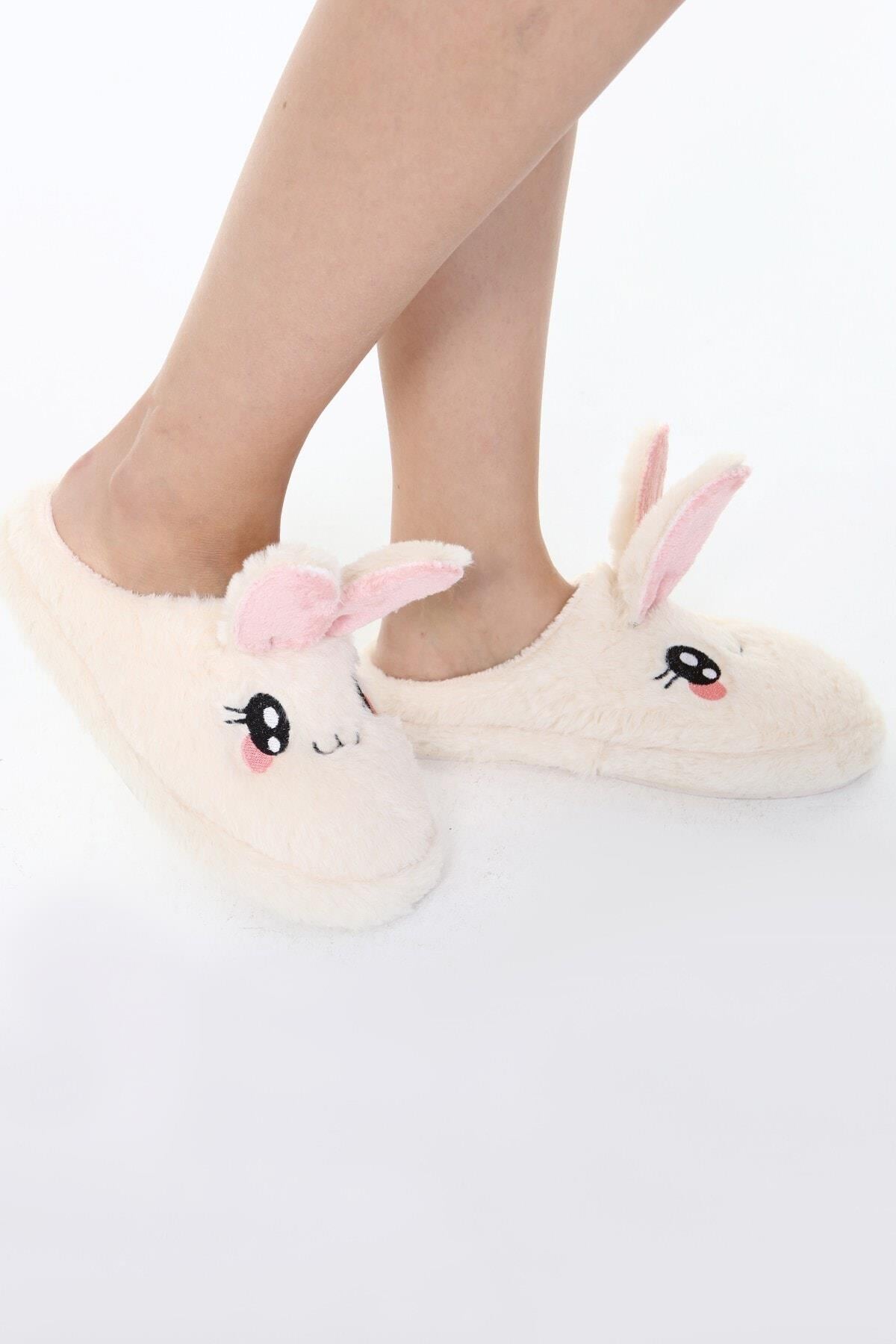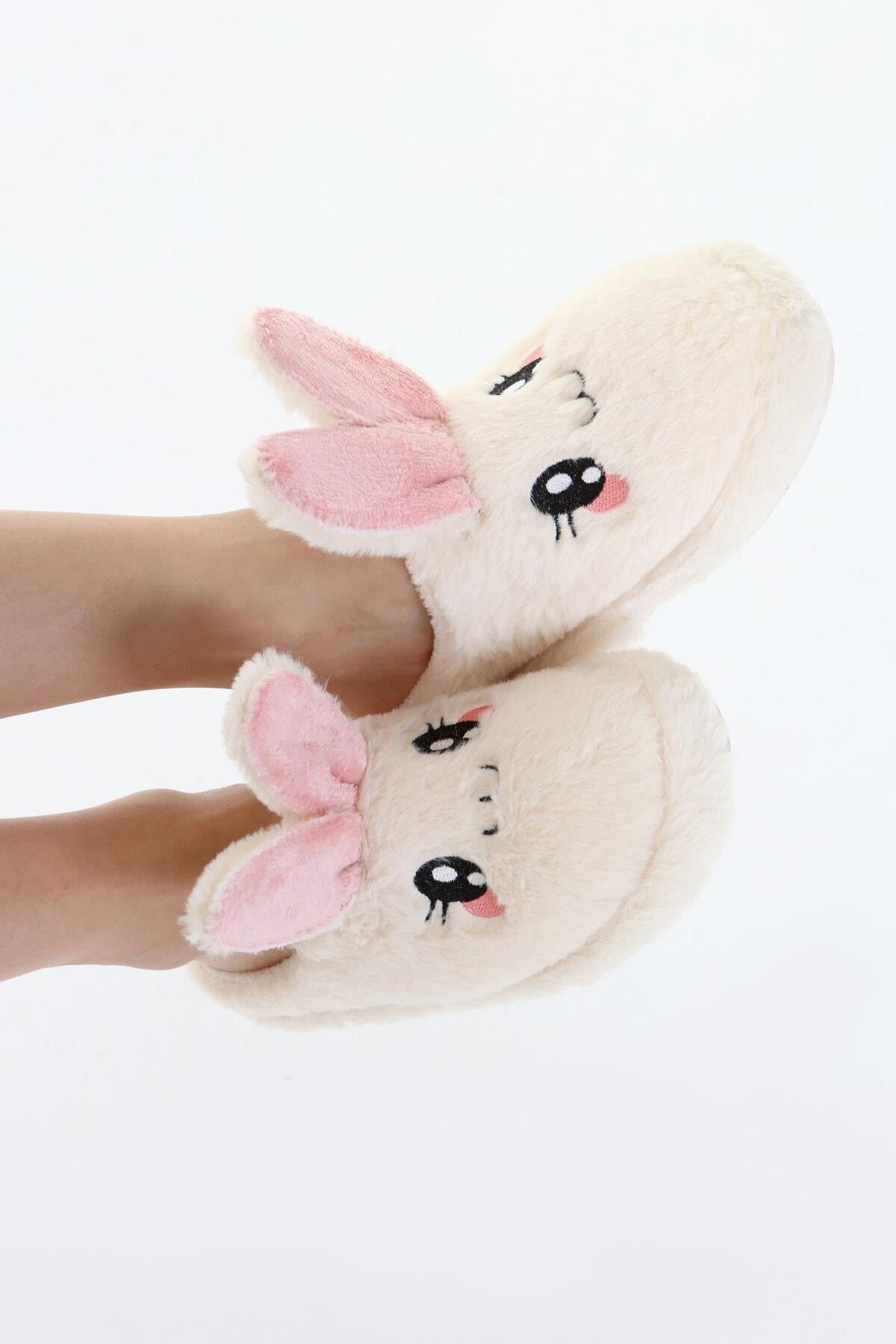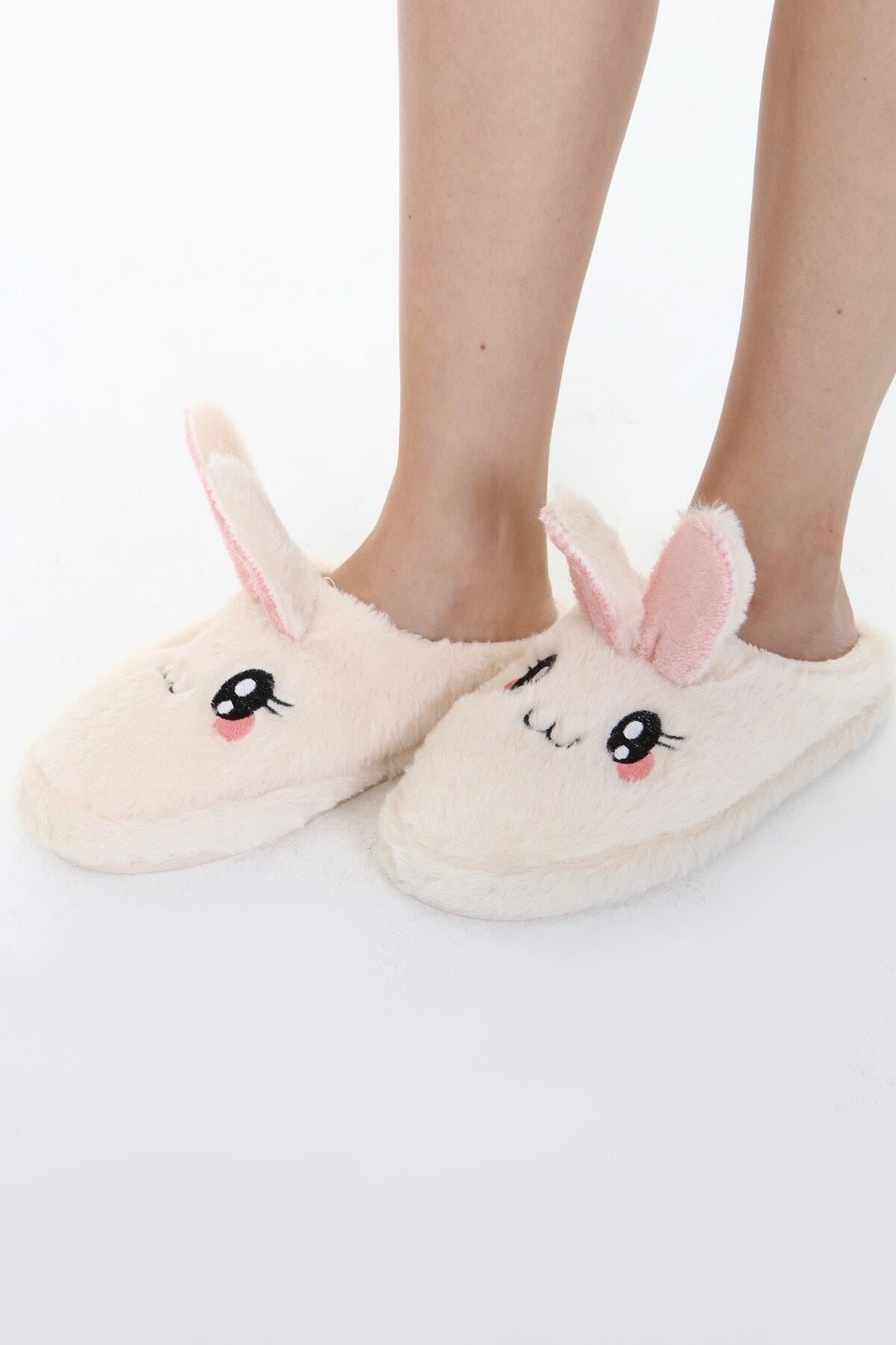Beyond Kadın Krem Rabbit Yumuşak Tüylü Gondol Ev Terliği 3cm BYNDFKB01