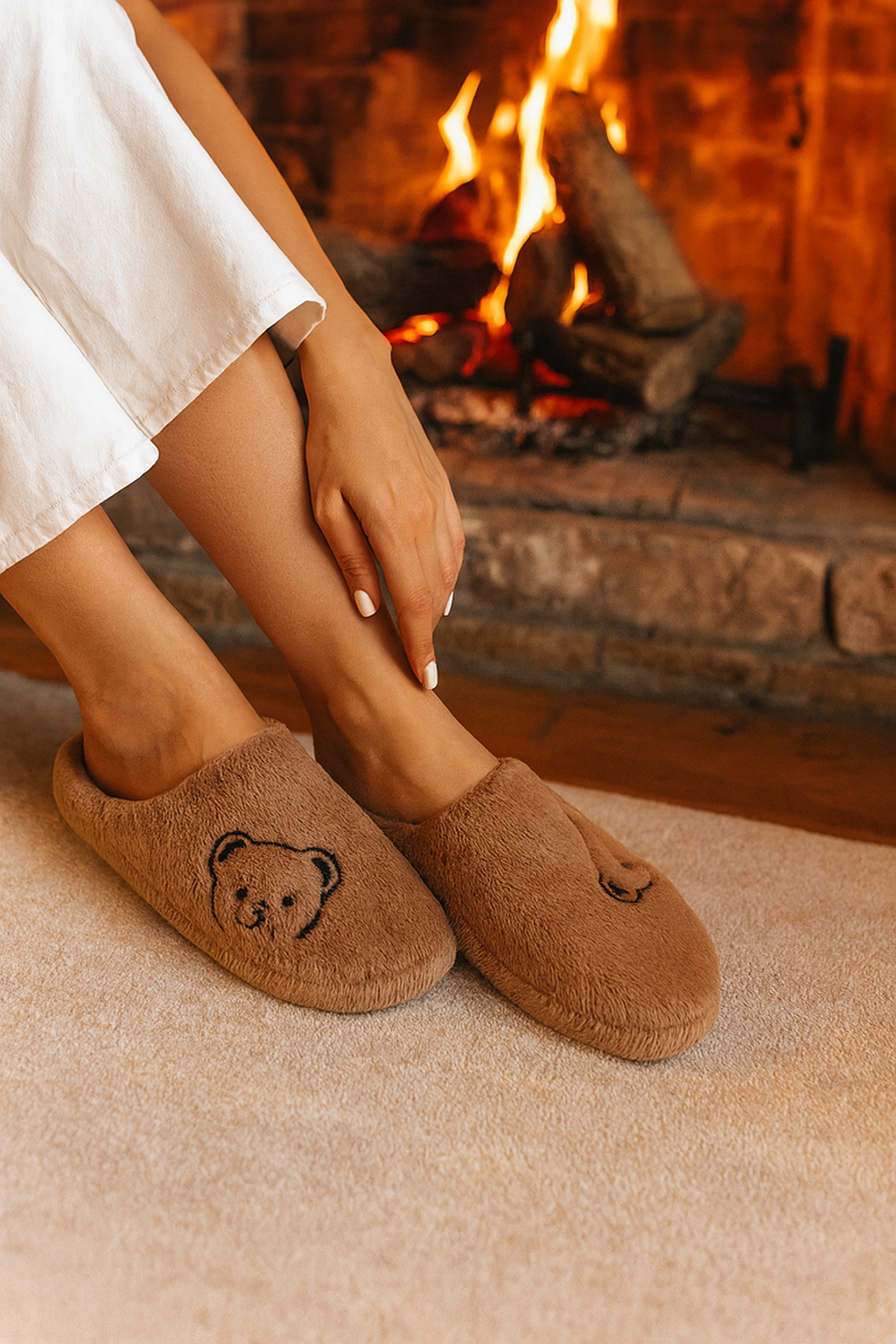 • Doğal tonuyla dikkat çeken taba ayıcıklı peluş ev terliği, konforu ve şıklığı bir arada sunar.