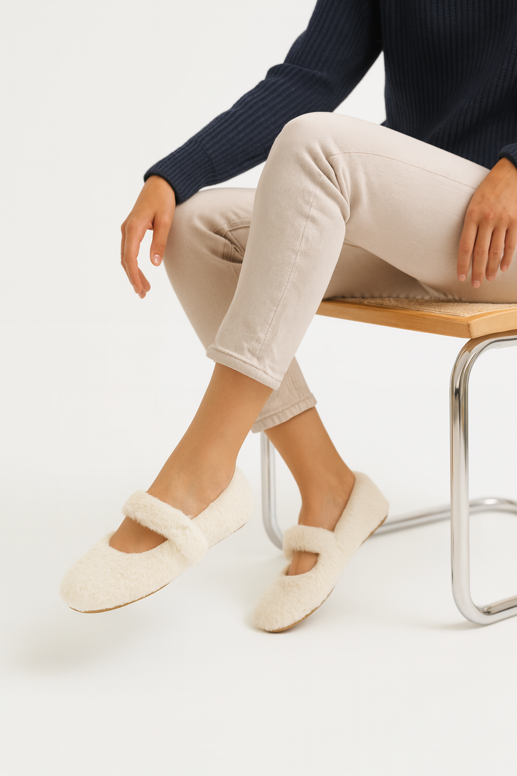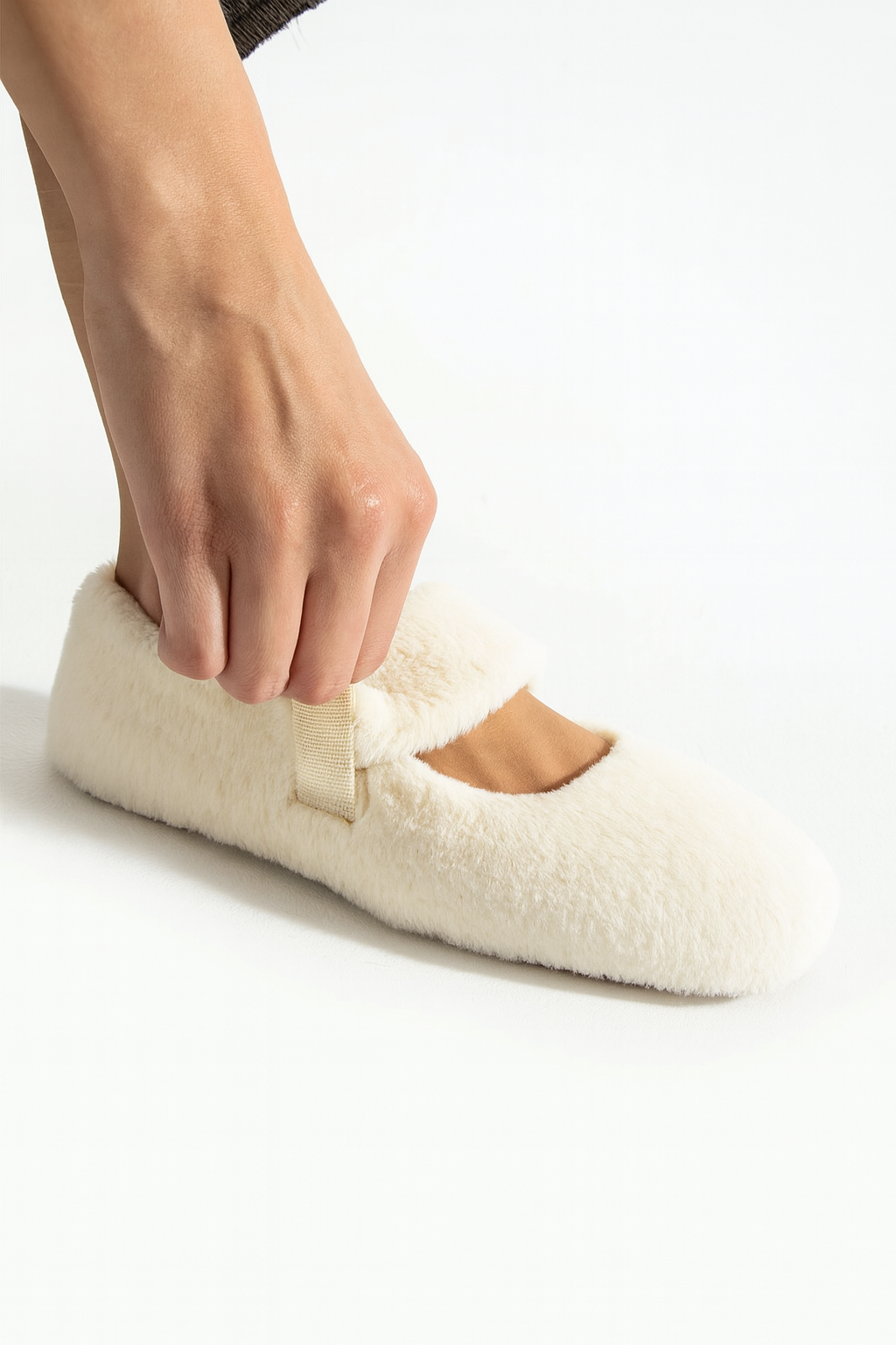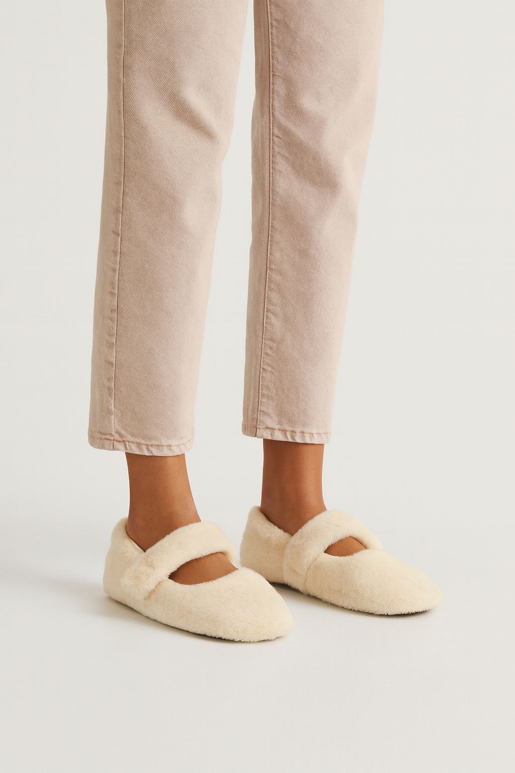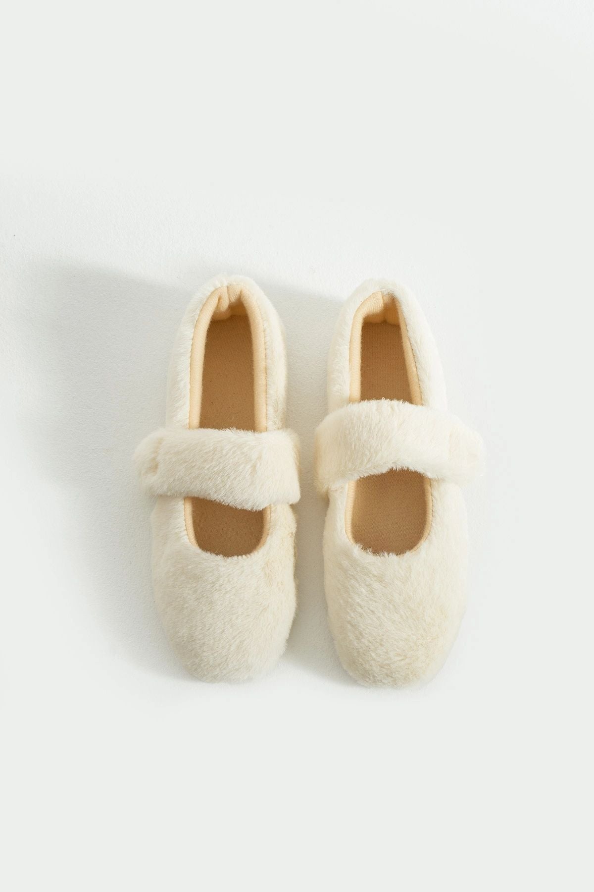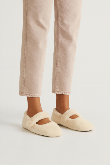 - Krem rengin zarif havası ve peluşun sıcaklığıyla Beyond kadın tüylü babet.