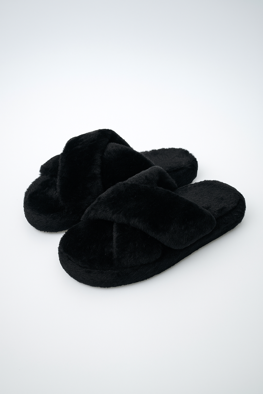 Beyond Kadın Siyah Çapraz Bantlı Tüylü Ev Terliği BYNDCAP01