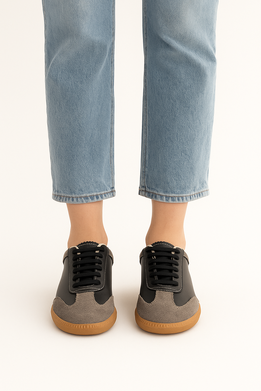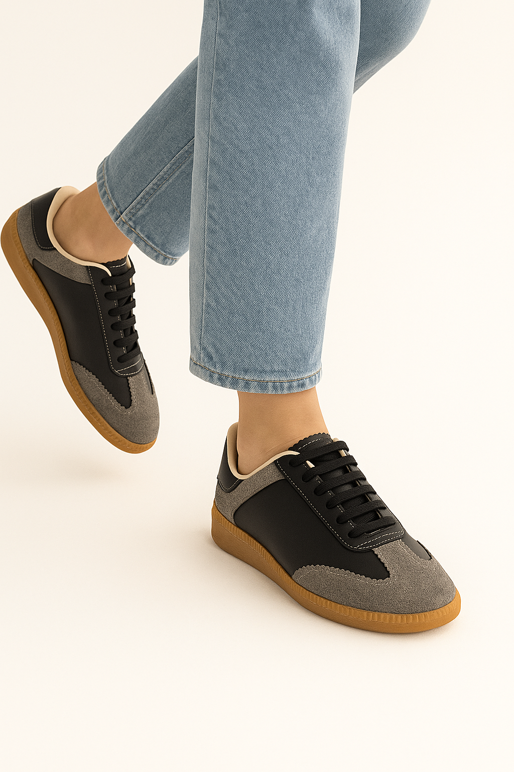 Beyond Kadın Siyah Xalda Gri Süet Bağcıklı Deri Sneaker BYNDAMD001