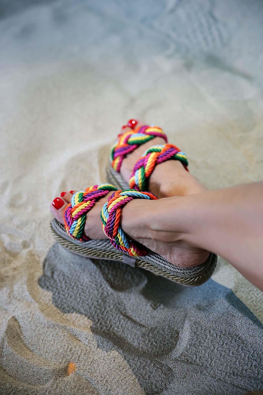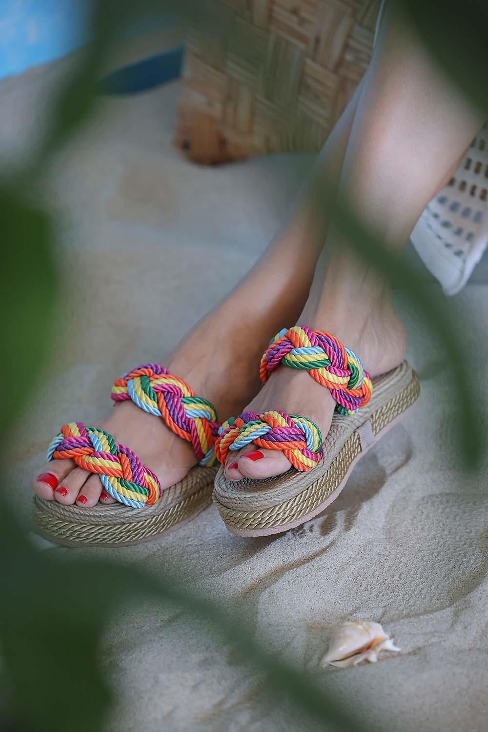 Beyond Kadın Multi Altın Halat İpli Yüksek Tabanlı Hasır Terlik BYNDH2T01