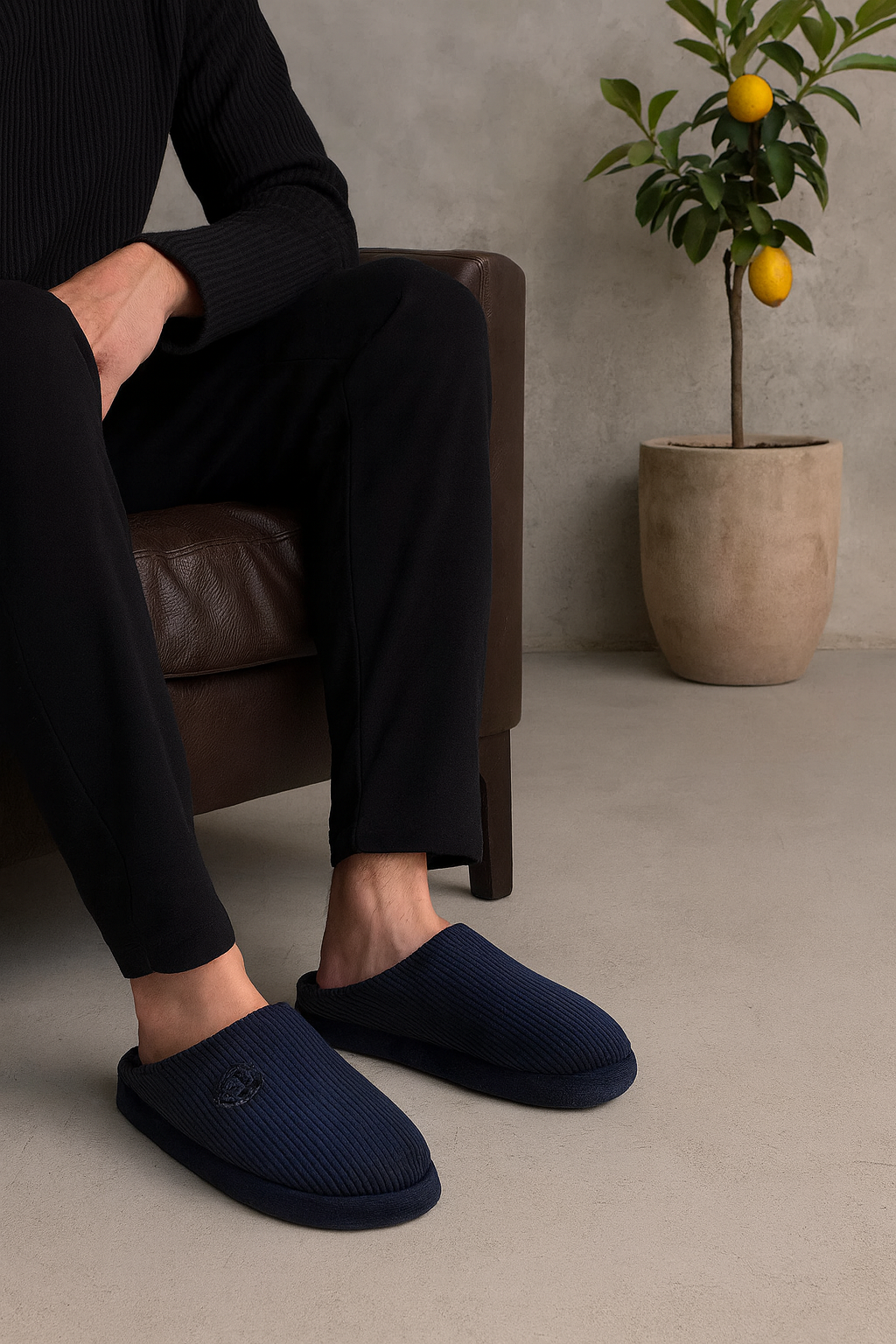 Beyond Erkek Lacivert Kadife Ev Terliği 3cm BYNDKDF01