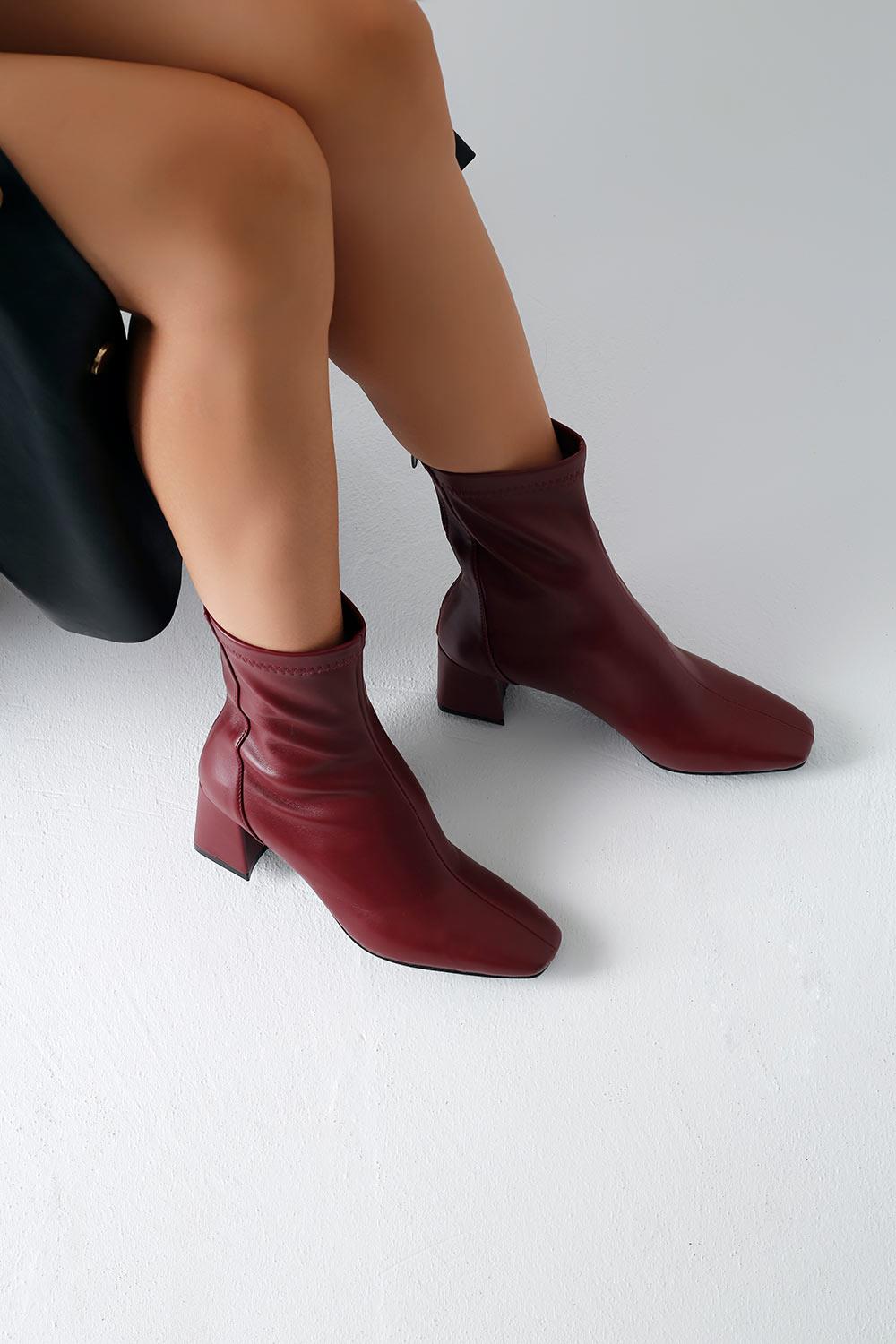 Beyond Kadın Bordo Pekin Streç Küt Kalıp Deri Bot 5cm BYNDSTRW01
