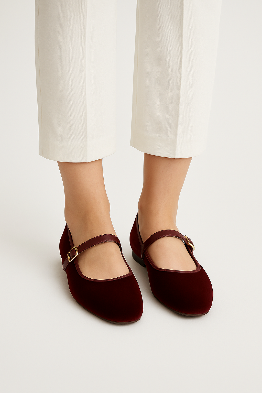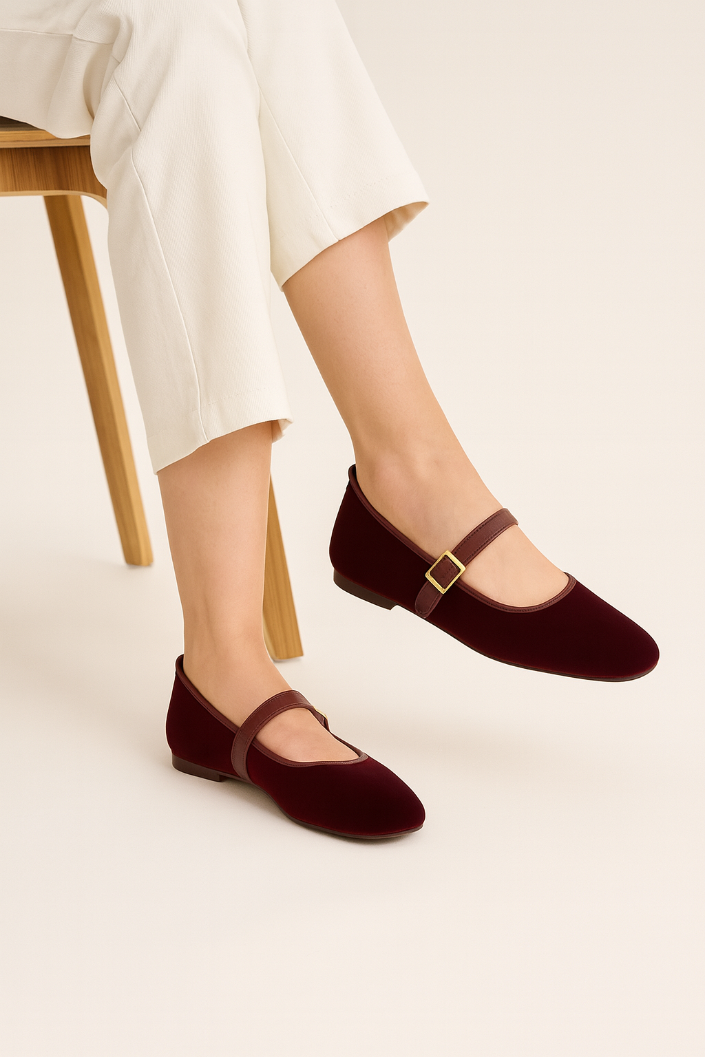 - Bordo rengin asaleti, kadifenin zarafetiyle buluştu: Beyond Kadın Tokalı Kadife Babet ile şıklığı yakalayın.