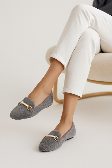 - Gri rengin şıklığıyla birleşen peluş ev babeti, ev kombinlerinize modern bir hava katar.