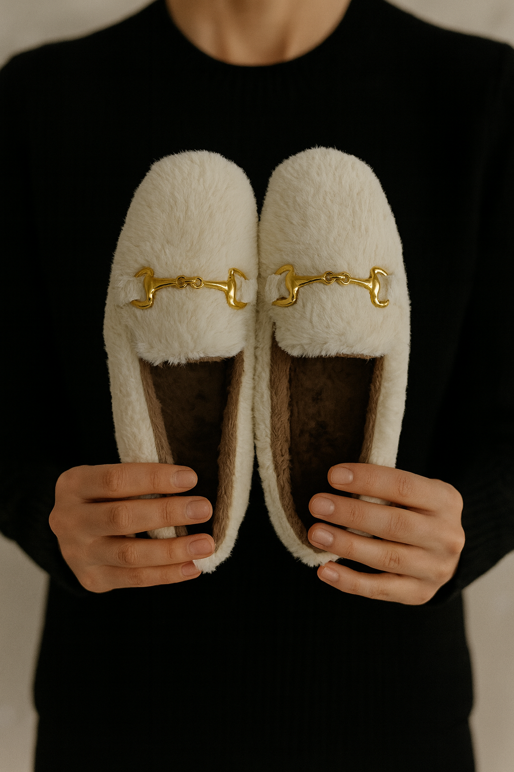 - Krem rengiyle zarif, tokalı tasarımıyla modern: Beyond Kadın Peluş Ev Babeti ile şıklığınızı evinize taşıyın.