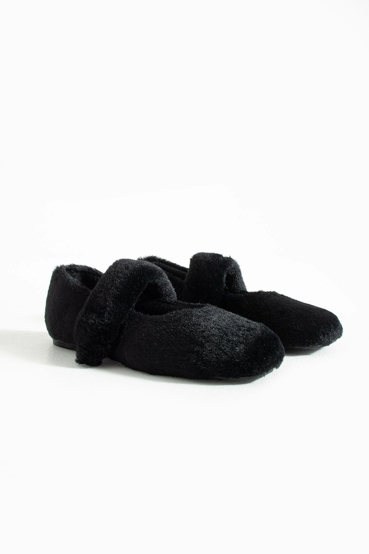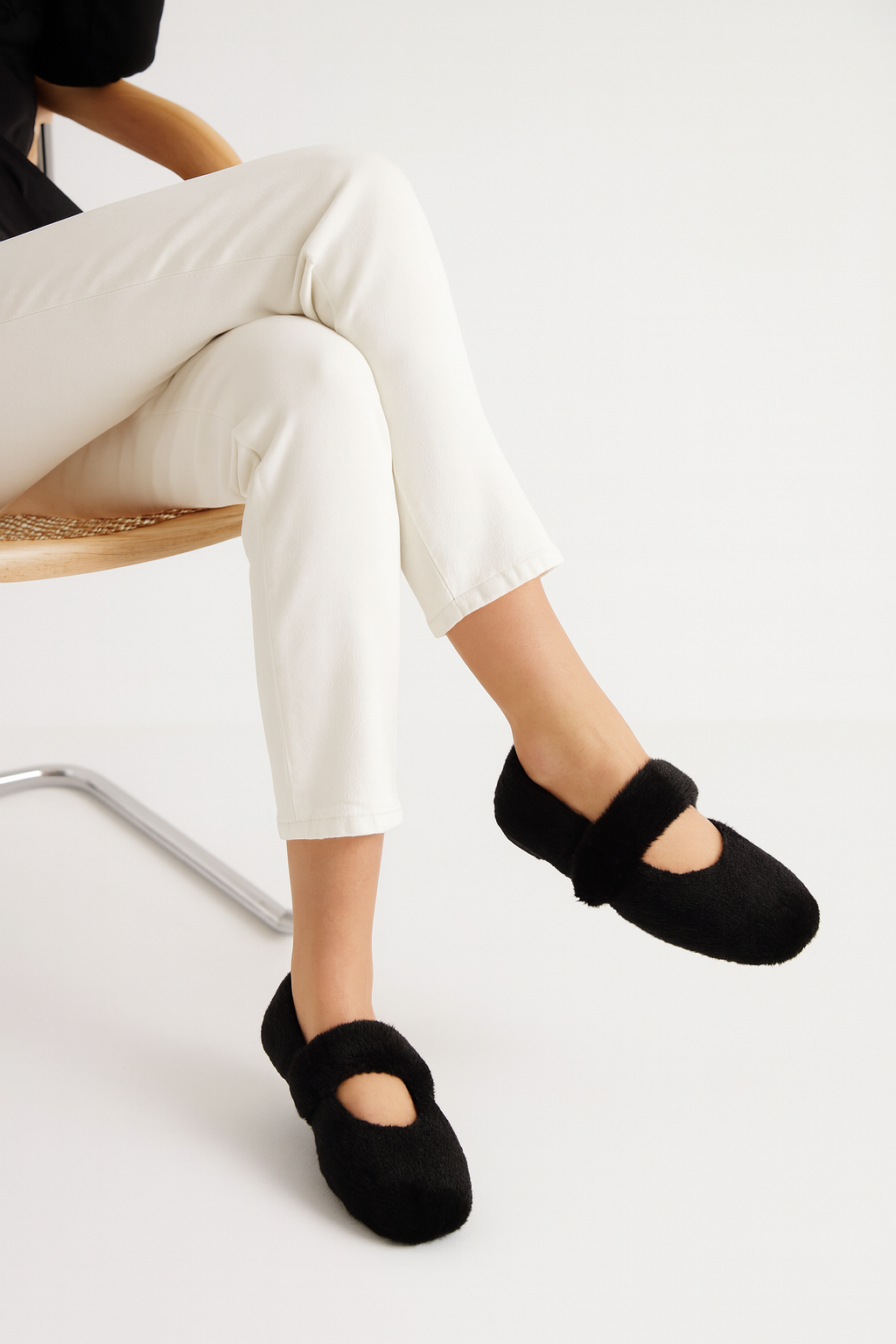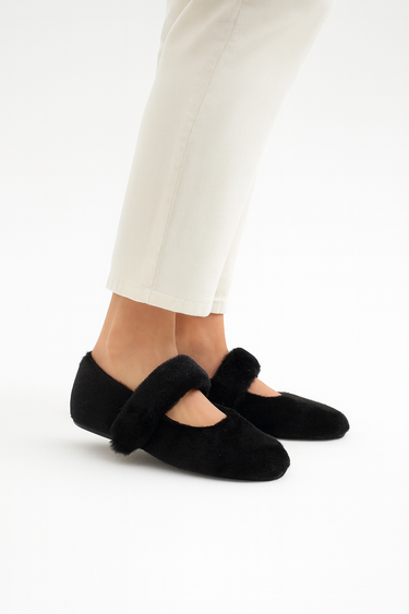 - Klasik siyah rengin zarafetini tüylü peluş sıcaklığıyla birleştiren Beyond kadın babet, her stile uyum sağlıyor.