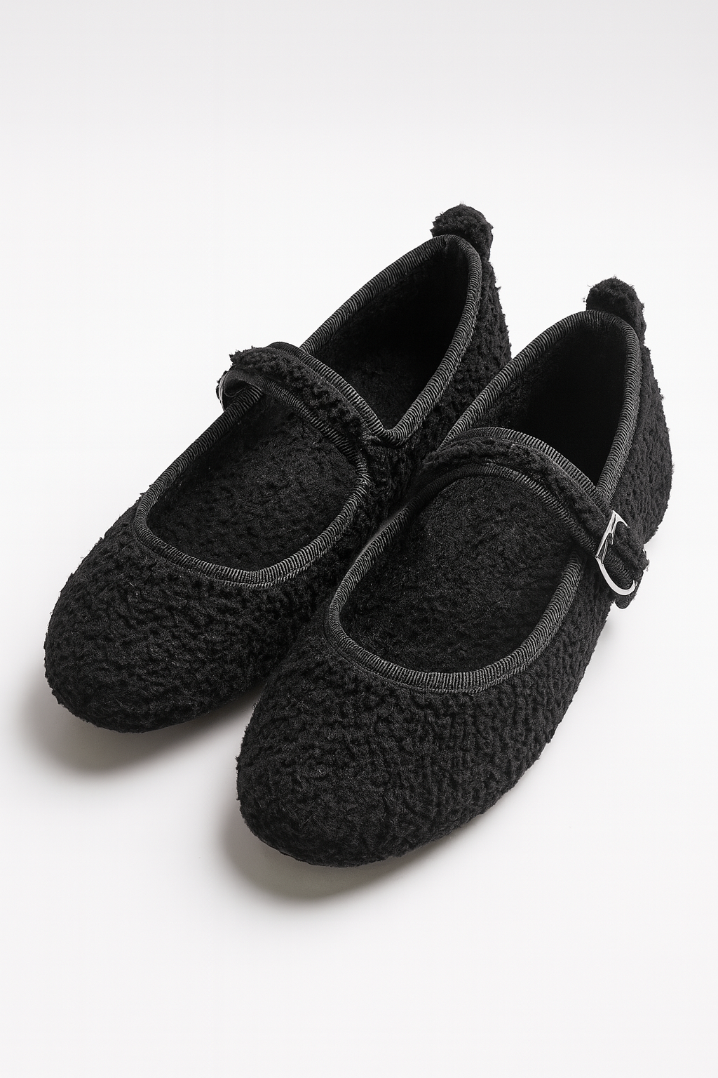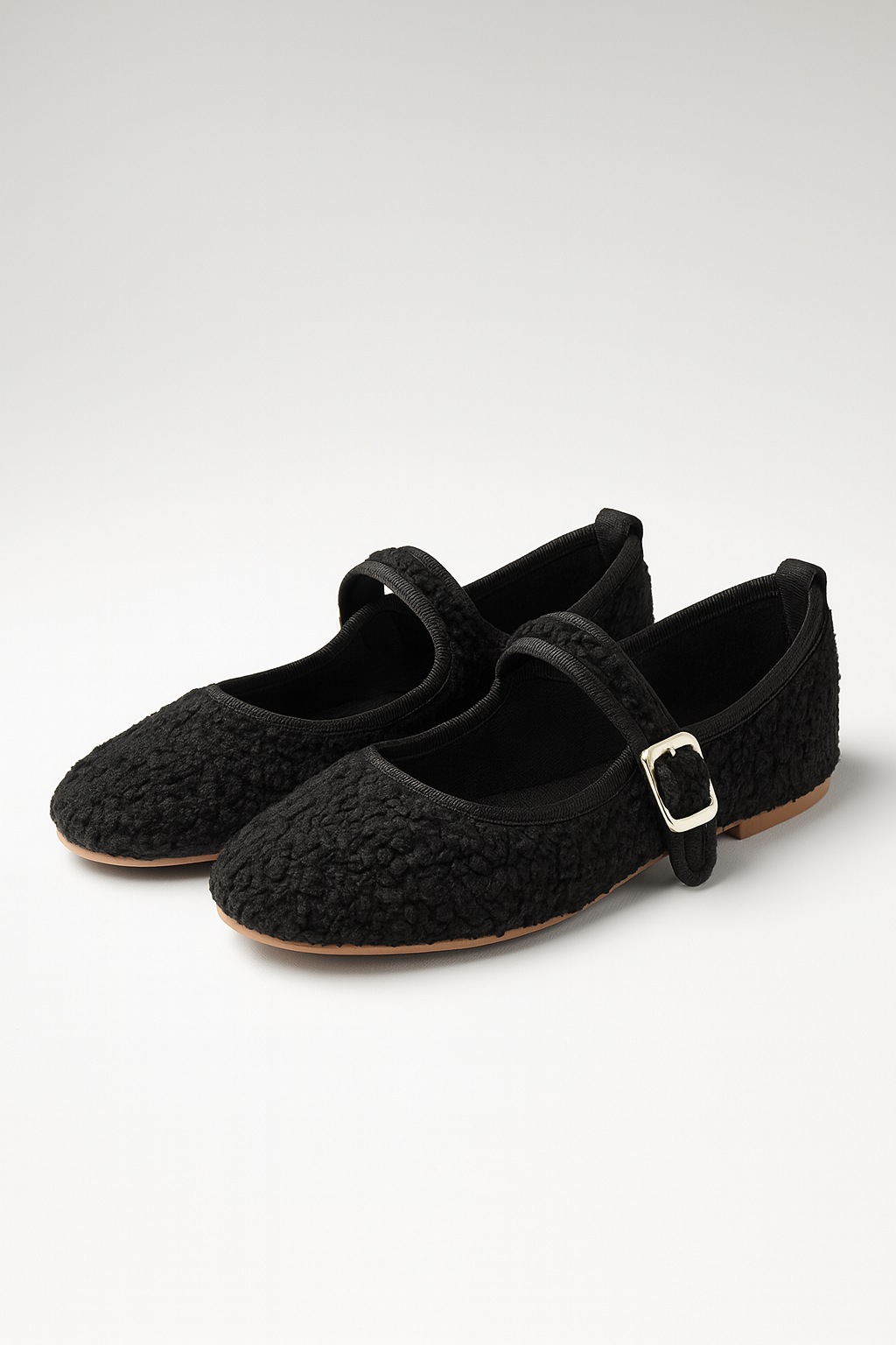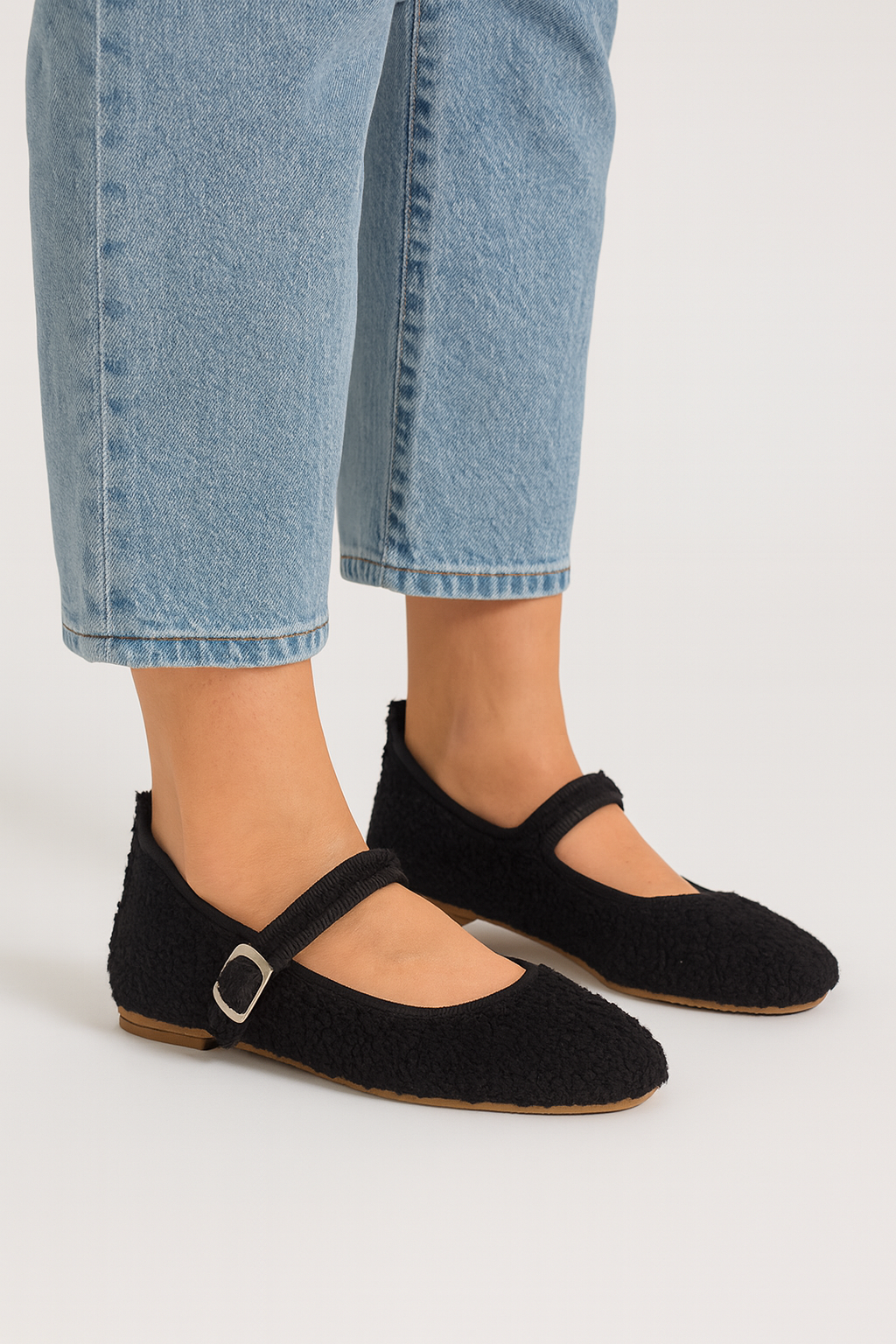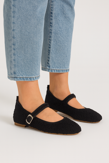 Beyond Kadın Siyah Mary Jane Teddy Peluş Tek Bant Günlük Balerin Babet BYNDMJ01