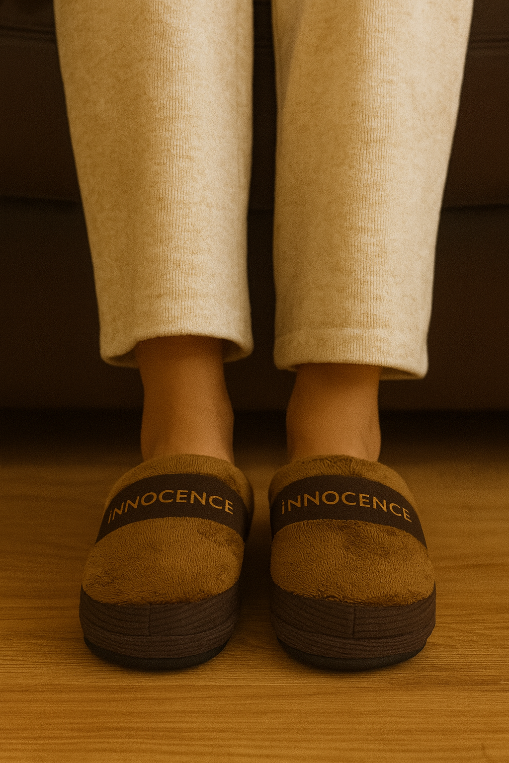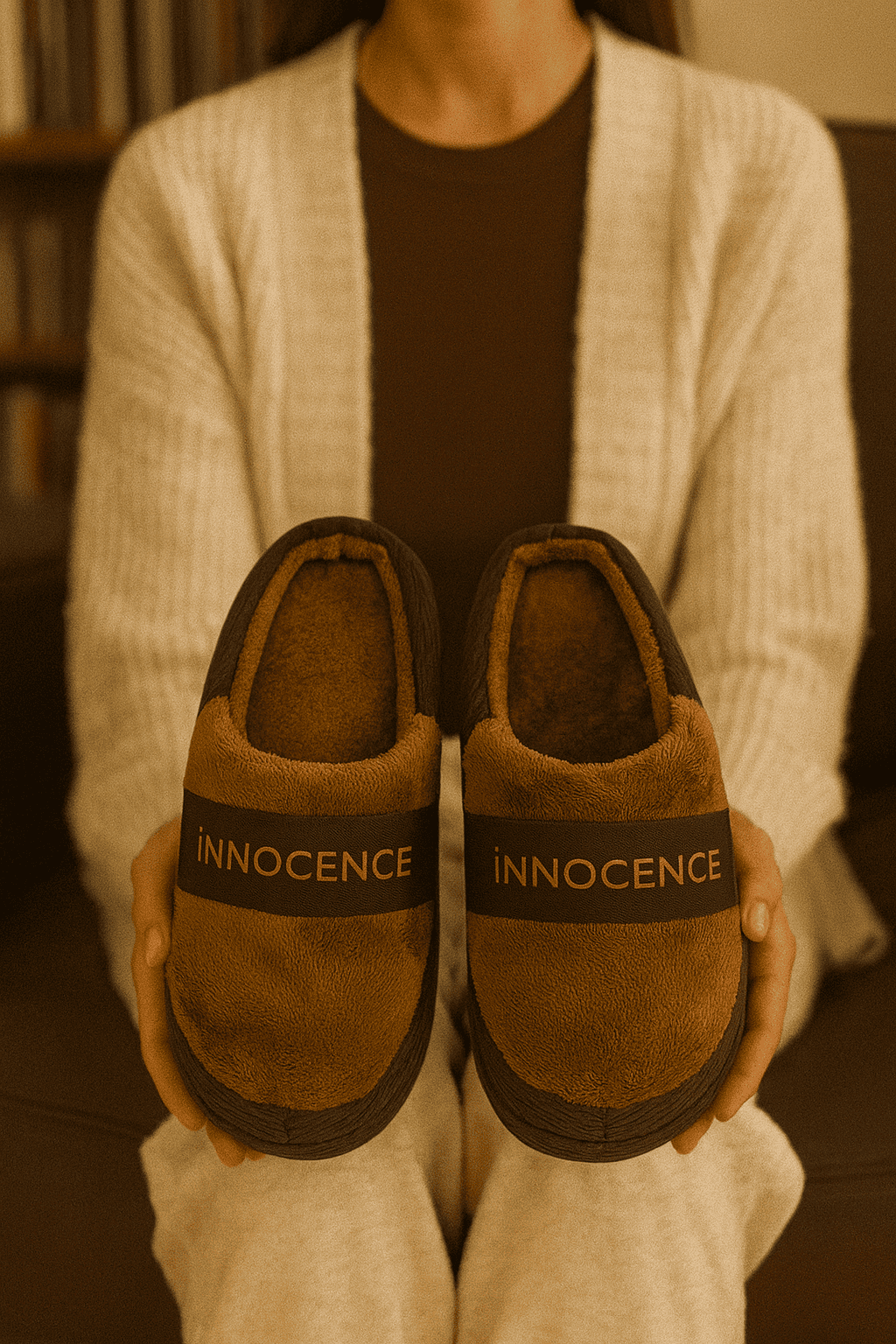 - Zarif kahverengi tonu ile şıklığı, peluş dolgusu ile sıcaklığı bir araya getiren ideal ev terliği.